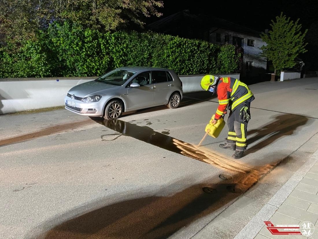 Zu einer Ölspur nach einem Verkehrsunfall wurden wir in die Finkenstraße alarmiert. Aus einem Fahrzeug lief nach einem Unfall das gesamte Öl des Fahrzeugs aus. Die Ölspur wurde abgebunden.