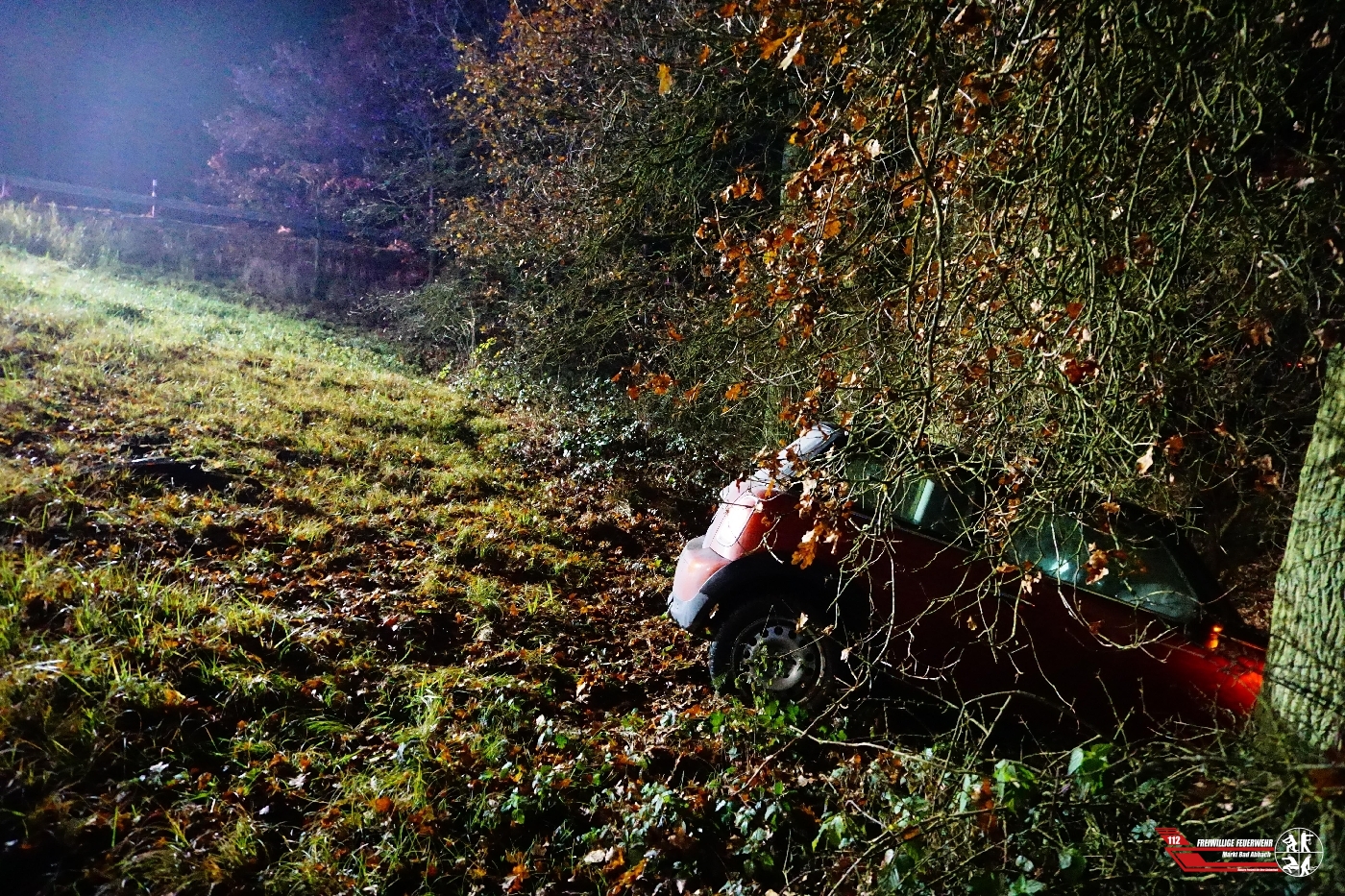 Zu einem Verkehrsunfall mit einer vermeintlich eingeklemmten Person wurden wir auf die Autobahn 93 Höhe Dreieck Saalhaupt alarmiert. Diese Meldung bestätigte sich vor Ort glücklicherweise nicht, die Person war nicht eingeklemmt. Die ebenfalls mitalarmierte Feuerwehr Teugn konnte die Anfahrt abbrechen. Der Fahrer des Fahrzeugs wurde verletzt und durch den mitalarmierten Rettungsdienst in ein nahegelegens Krankenhaus verbracht. Zum Unfallhergang können keine genaueren Angaben gemacht werden, lediglich dass das Fahrzeug rund 70m von der Fahrbahn entfernt in einem Abgrund stand. Für die Arbeiten des Bergeunternehmens wurde die Unfallstelle weitflächig ausgeleuchtet, sowie die Fahrbahn abgesichert.
