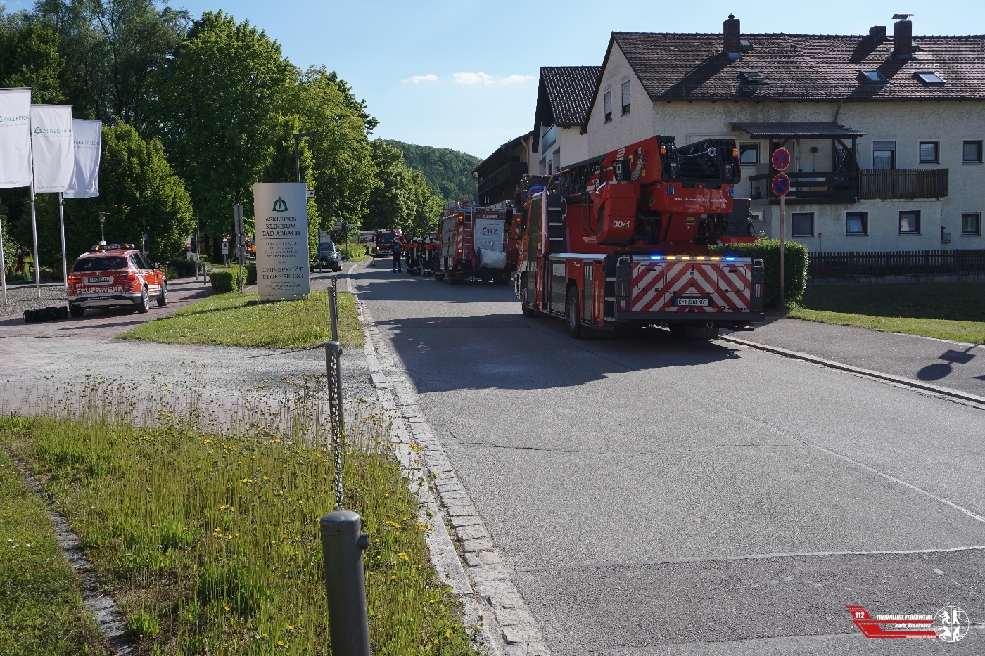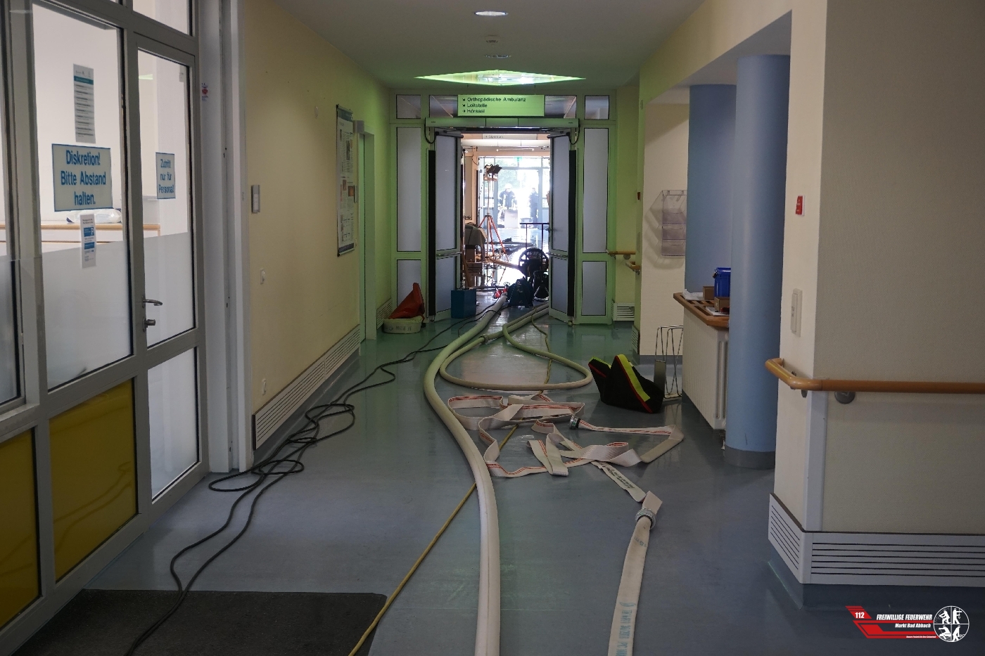 Gegen 16:30 Uhr wurden wir zu einem automatischen Brandmeldealarm in das Asklepios-Fachkrankenhaus alarmiert. Bei Eintreffen der ersten Fahrzeuge wurde eine starke Rauchentwicklung in einer Abteilung im Erdgeschoss festgestellt. Umgehend ging ein Trupp unter schwerem Atemschutz zur Brandbekämpfung vor. Laut Polizei wurde durch einen technischen Defekt in einem Lagerraum eine Heizdecke in Brand gesetzt, diese griff dann auf weitere Gegenstände über. Vorsorglich um mehr Personal und Atemschutzgeräteträger an der Einsatzstelle zu haben, wurde die Alarmstufe von B3 - BMA auf B5 - Brand Krankenhaus erhöht. Nachdem "Feuer aus" gemeldet wurde konnte ein Großteil der alarmierten Feuerwehren die Einsatzfahrt abbrechen. Im Einsatz waren zur Brandbekämpfung und um den Lagerraum komplett auszuräumen, je zwei Atemschutztrupps der Feuerwehr Bad Abbach und der Feuerwehr Lengfeld.