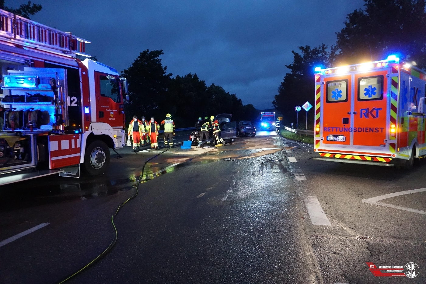 Gegen 21:20 Uhr wurden wir zusammen mit der Feuerwehr Poign zu einem Verkehrsunfall zwischen zwei Pkw Höhe des Auffahrtsbereichs der A93 alarmiert. Aus bisher ungeklärter Ursache kollidierten die Fahrzeuge frontal  miteinander. Beide Fahrer der Unfallfahrzeuge wurden mit Verletzungen durch den mitalarmierten Rettungsdienst in nahegelegene Krankenhäuser transportiert.