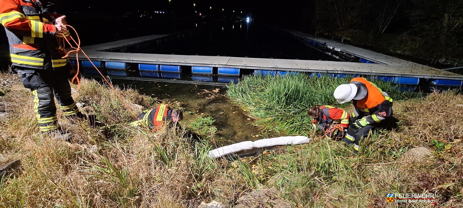 Um das Ausmaß der Verschmutzung besser erkennen zu können, leuchteten mehrere Einheiten sowie unsere Drehleiter die Wasseroberfläche aus.