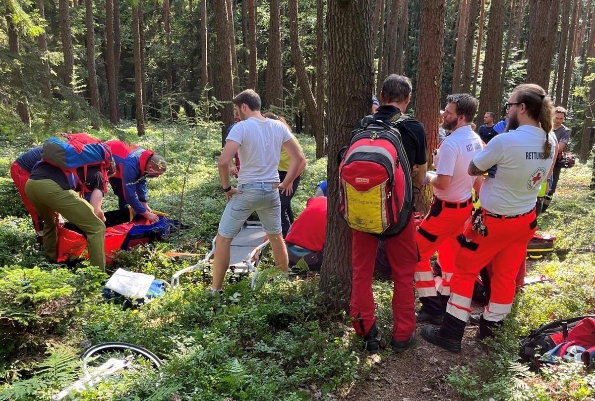 Der per Rettungshubschrauber eingeflogene Notarzt stabilisierte den Patient eher er durch die Bergwacht aus dem Waldgebiet gerettet wurde.