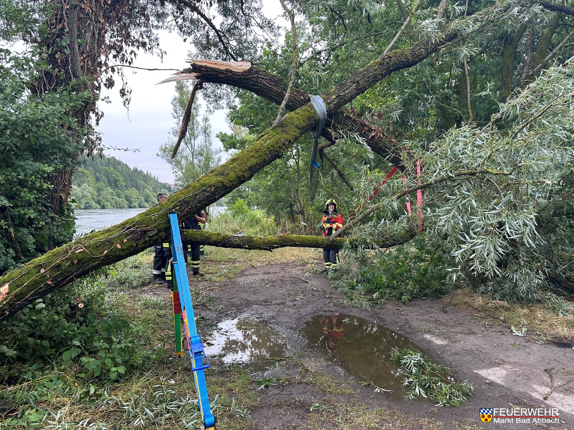 In Folge der Unwetternacht stürzte eine große Weide am Donauunfer auf einen Geländewagen. Verletzt wurde hierbei glücklichweise niemand.