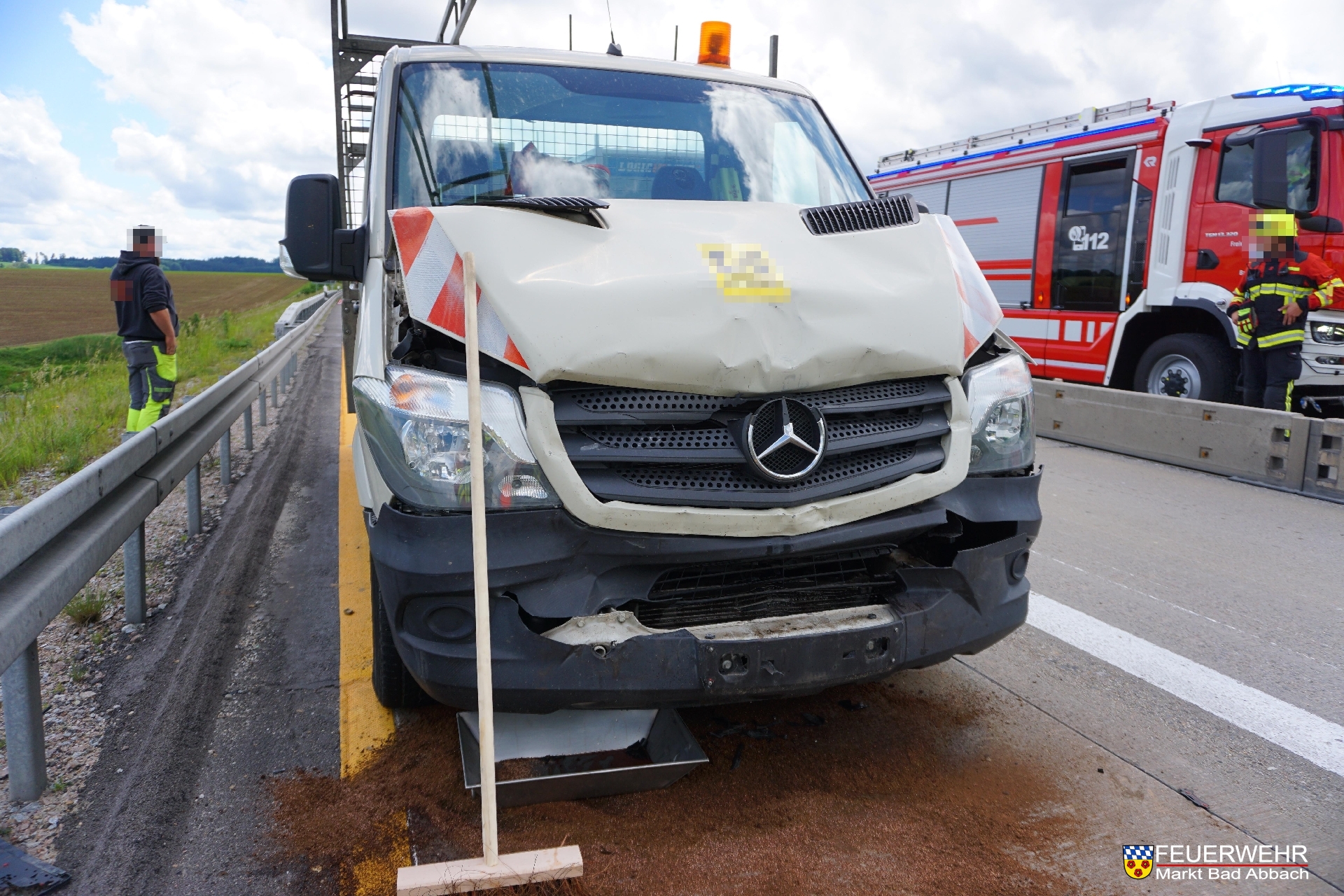 Zusammen mit der Feuerwehr Teugn wurden ausgelaufene Betriebsstoffe gebunden und Verkehrslenkungsmaßnahmen übernommen.