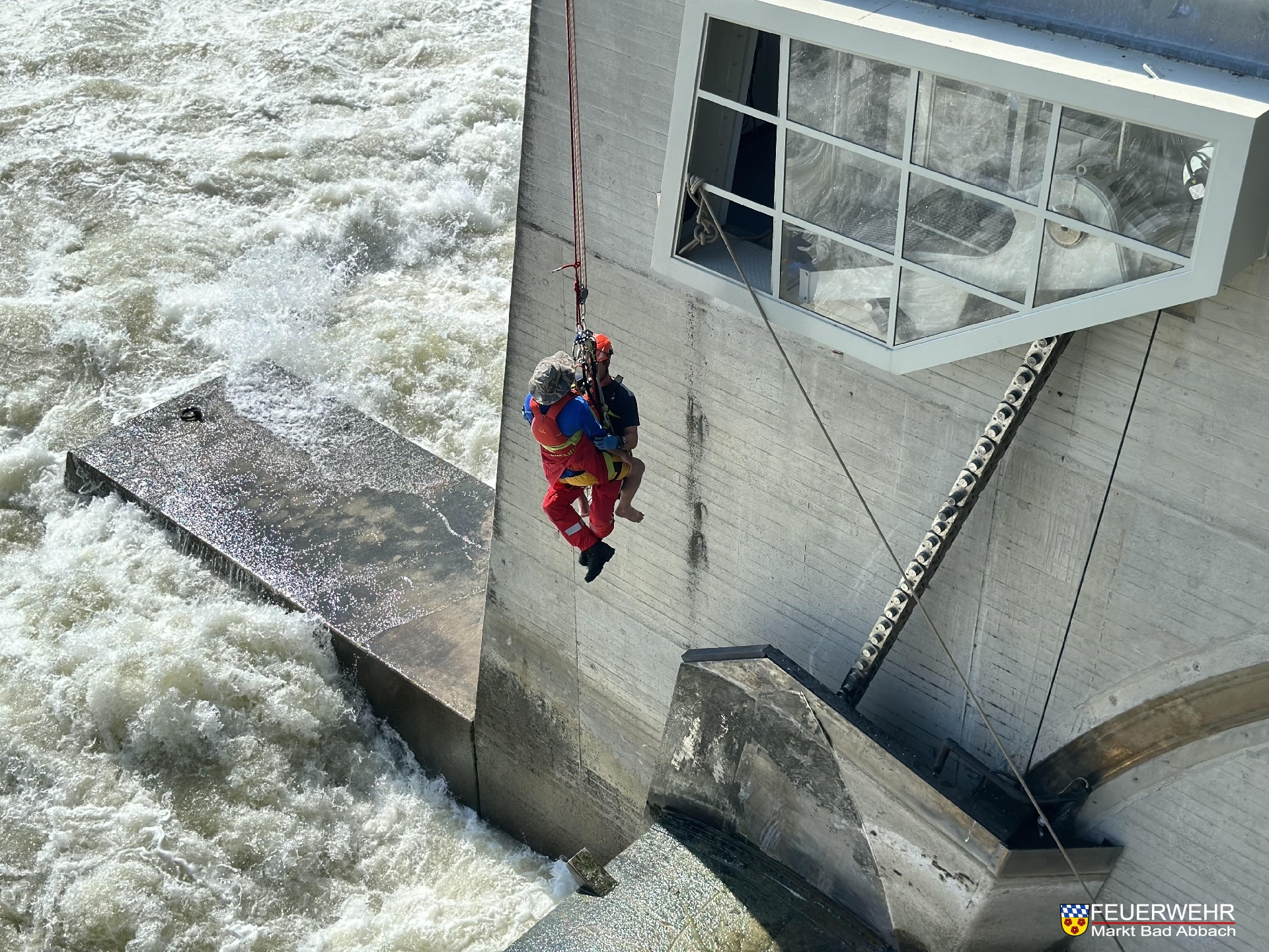 Ein Kajakfahrer geriet aus Unachtsamkeit in die Strömung des Donaukraftwerks und trieb in eine der Wehrklappen. Glücklicherweise konnte er sich aus letzter Kraft dort selbst sichern. Aufgrund der lebensgefährlichen Wassermaßen in diesem Bereich war ein alleiniges Befreien aus dieser Situation nicht mehr möglich.