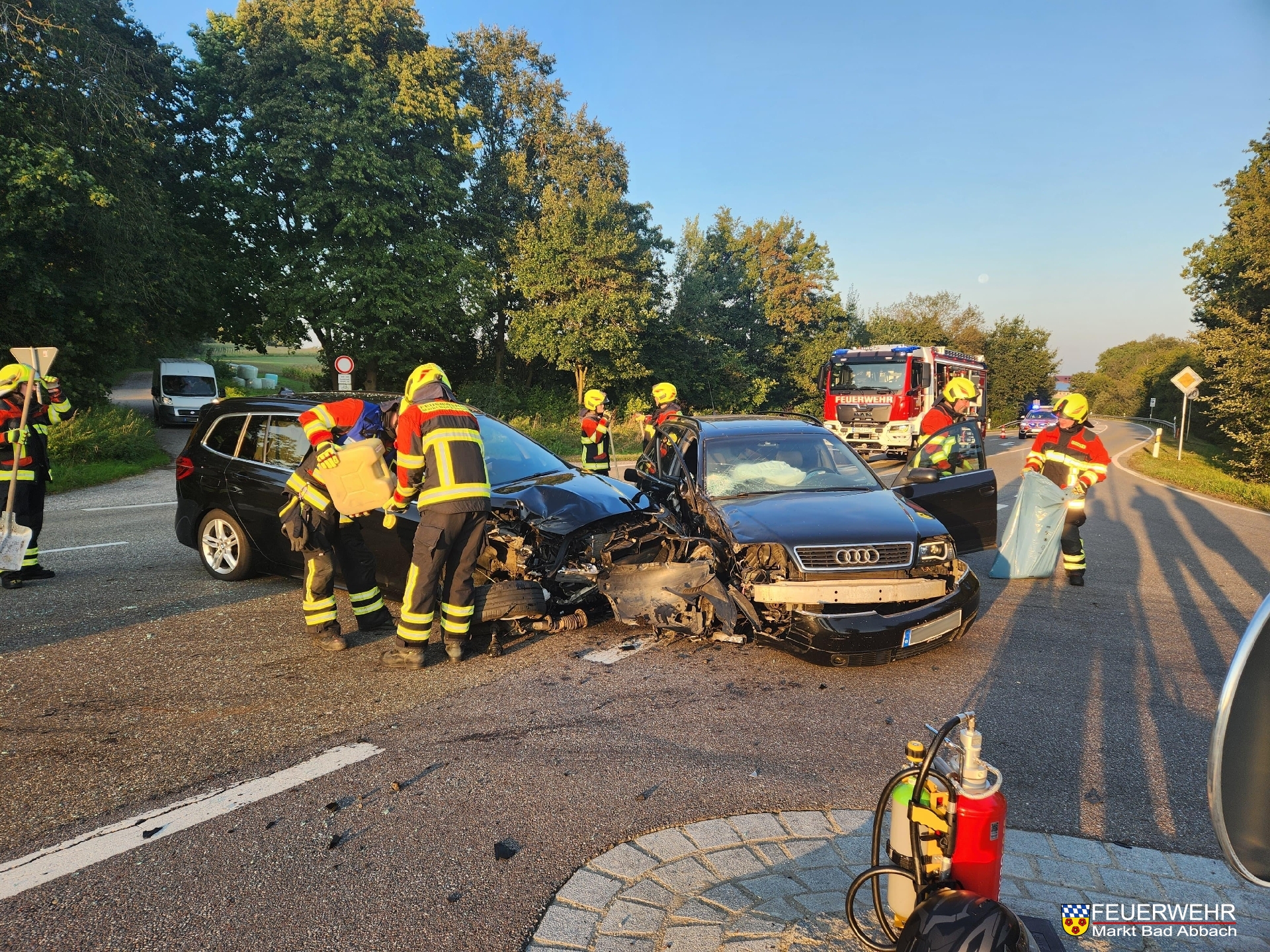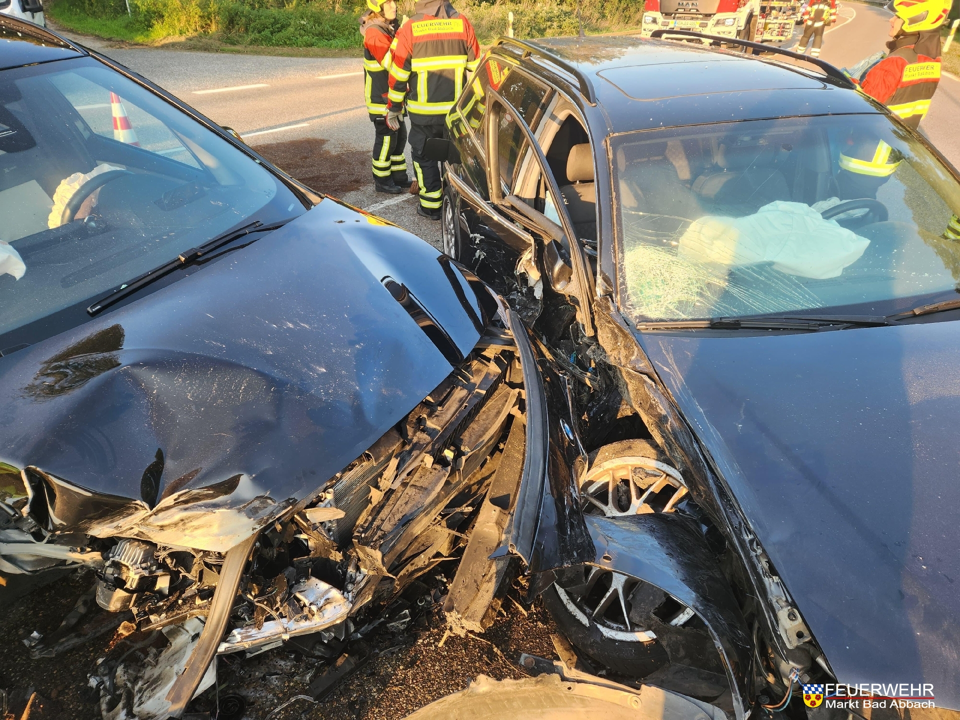Trotz der massiven Deformation der beiden Mittelklassewagen, konnten dank Sicherheitseinrichtungen und Airbags die Insassen die Fahrzeuge selbstständig verlassen.
