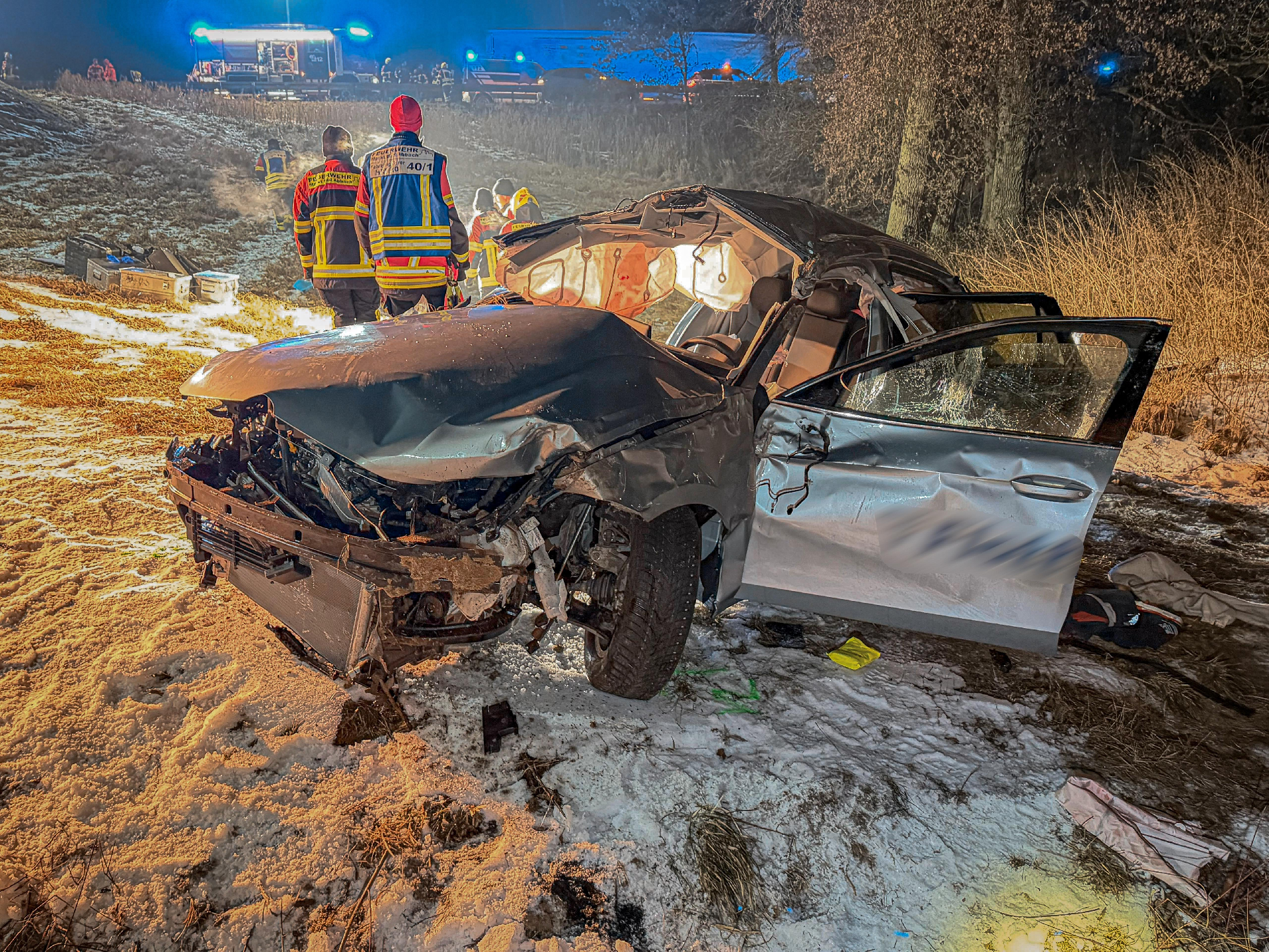 Der Unfallfahrer konnte das Fahrzeug mit Verletzungen selbstständig verlassen und in ein nahegelegenes Krankenhaus transportiert werden. Der Beifahrer hingegen, wurde durch die extreme Deformation des Pkw schwer eingeklemmt. Trotz einer eingeleiteten Sofortrettung mit hydraulischem Rettungsgerät und dessen zügigen Befreiung, kam für den 20-jährigen Beifahrer jede Hilfe zu spät. Er verstarb trotz Reanimationsmaßnahmen noch an der Unfallstelle.
