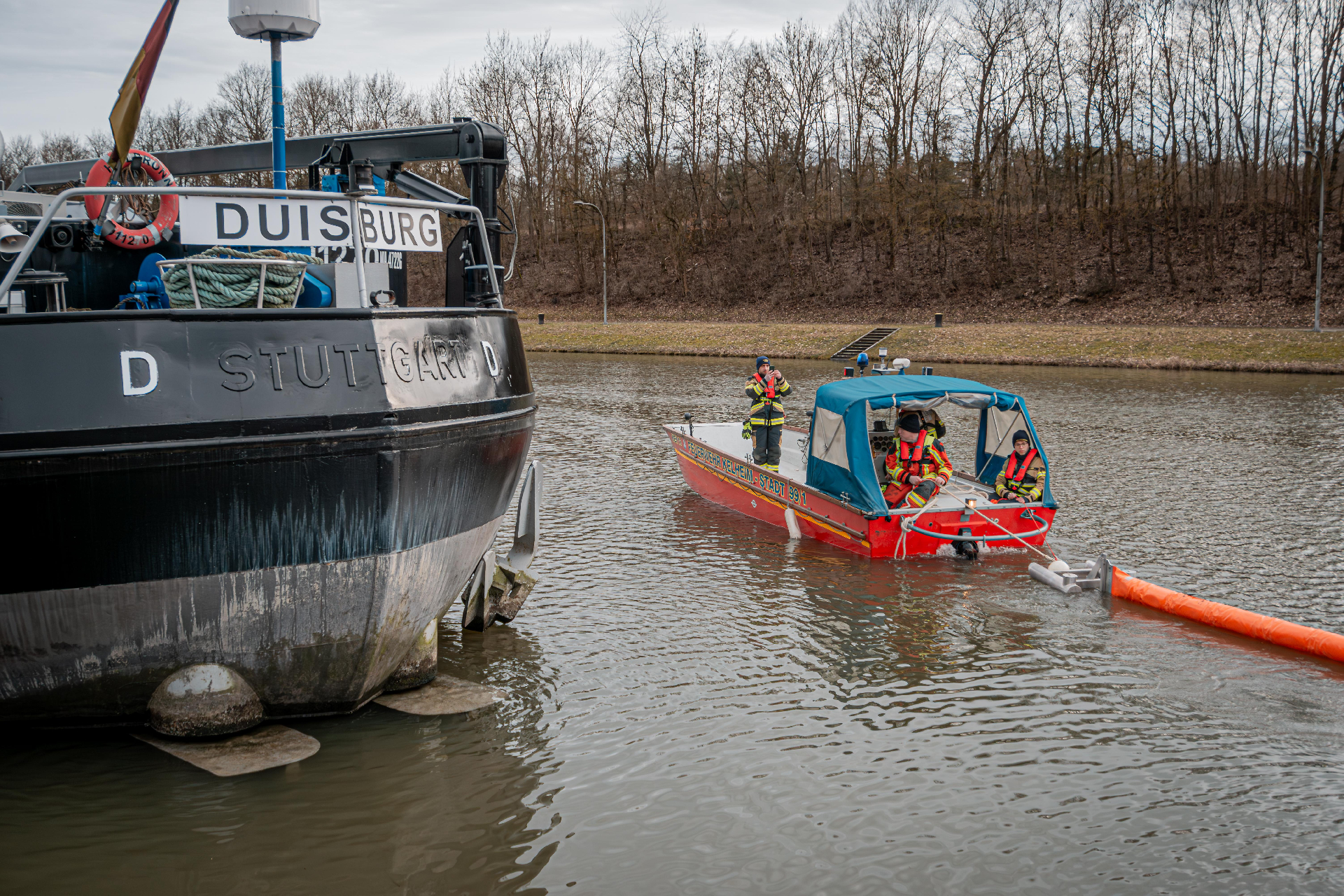 Ein Bunkerschiff hatte mehrere Liter Gasöl verloren, was zu einer großflächigen Verschmutzung der Wasseroberfläche führte. Nach einer umgehenden Lageerkundung durch den Fachberater des THW und den Einsatzleiter der Feuerwehr wurde die Fachgruppe Ölschaden des THW mit Alarmstufe 2 hinzugezogen.