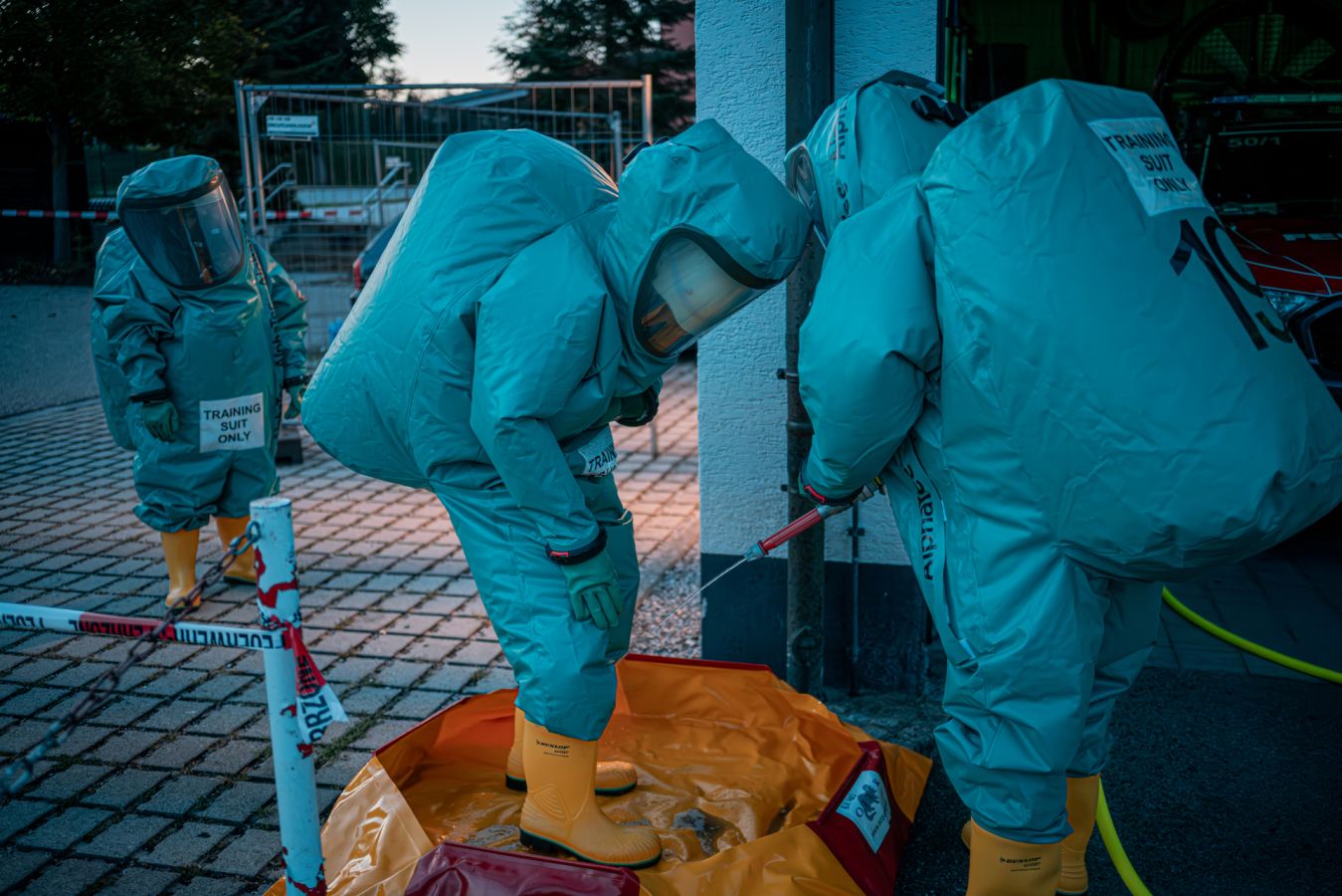 Jeder Atemschutzgeräteträger der Feuerwehr Markt Bad Abbach bekommt die Zusatzusbildung zum Tragen des Chemiekalienschutzanzuges.