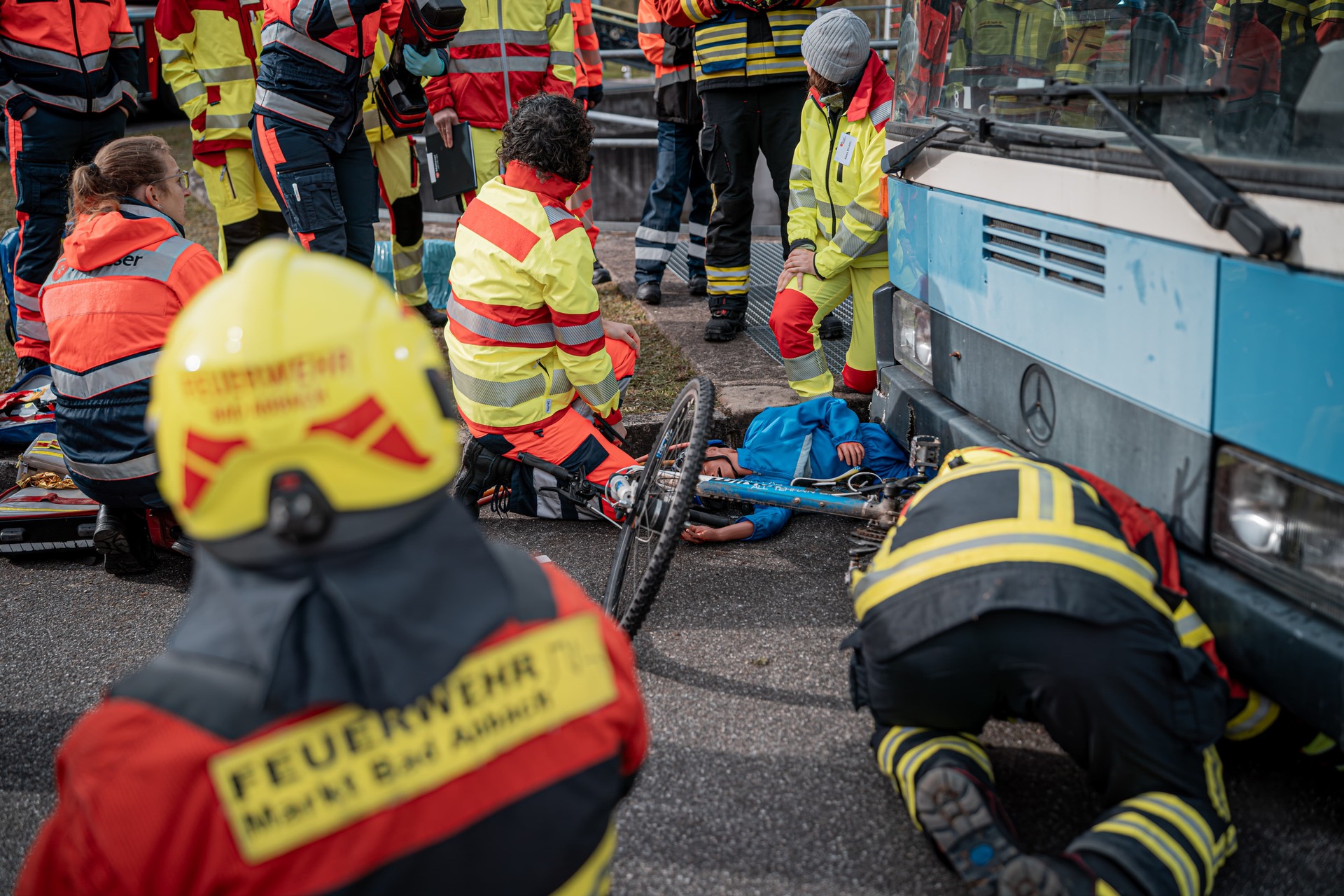 - Personen unter Linienbus eingeklemmt