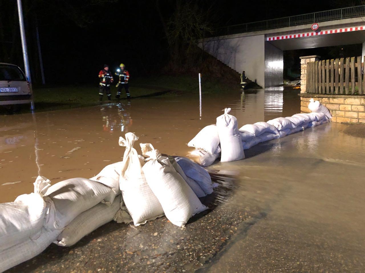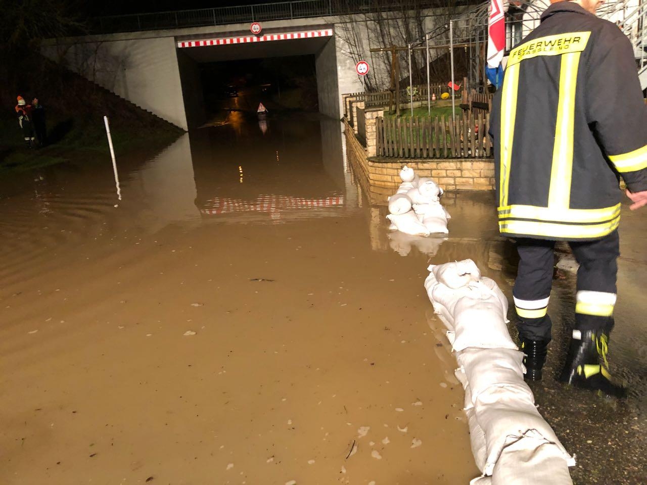 Zur Unterstützung der Feuerwehr Graßlfing wurden wir durch die Integrierte Leitstelle Regensburg alarmiert. Aufgrund der anhaltenden Regenfälle ging ein Bach über und überflutete die Dorfstraße. Ein Anwesen wurde durch die Wassermassen überschwemmt. Die enormen Wassermassen wurden abgepumpt und ein künstlicher Bachlauf mittels Sandsäcken errichtet. Außerdem wurde die Einsatzstelle mittels des Lichtmastanhängers weiträumig ausgeleuchtet.