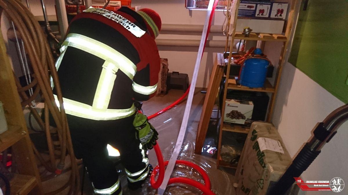 Zu einem weiteren Keller unter Wasser wurden wir durch einen Bürger in den Kalkofenring gerufen. Auf einer Fläche von 120 m² stand der Keller circa 15 cm unter Wasser. Das Wasser wurde mittels mehreren Wassersaugern, sowie einer Tauchpumpe aus dem Keller entfernt.