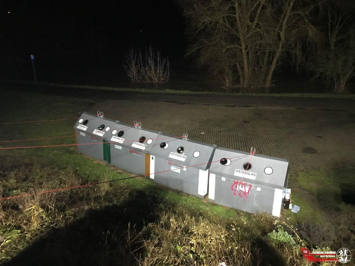Aufgrund des ansteigenden Donau-Pegels, mussten vier Glascontainer an der Donaupromenade vor dem Abtreiben gesichert werden.