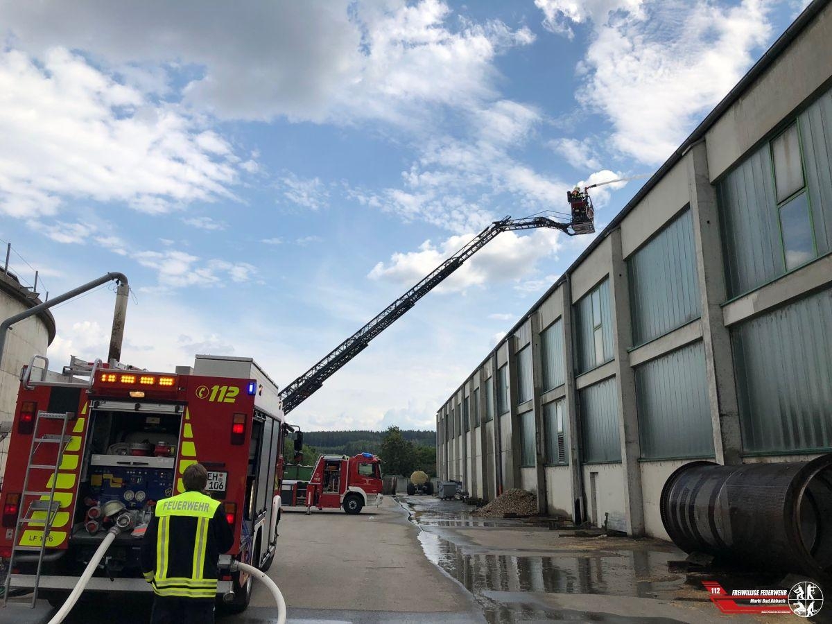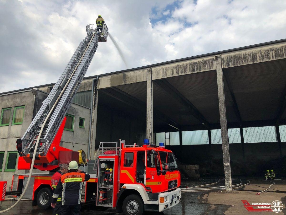 Um 14:51 Uhr wurden wir mit der Meldung "Brand Dachstuhl" erneut nach Teugn Thronhofen alarmiert. Im Dach des Hallenkomplexes vom Morgen schwellte ein Feuer. Zusammen mit den Wehren aus Teugn, Lengfeld, Saalhaupt und Kelheim-Stadt galt es einen massiven Löscheinsatz in ca. 10 Metern Höhe mittels unserer und der Drehleiter aus Kelheim einzuleiten um eine weitere Ausbreitung im Dachinneren zu vermeiden.
