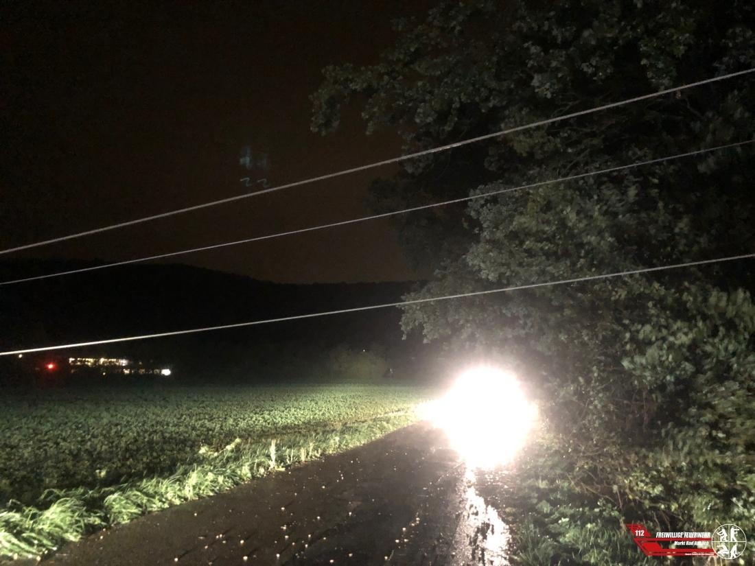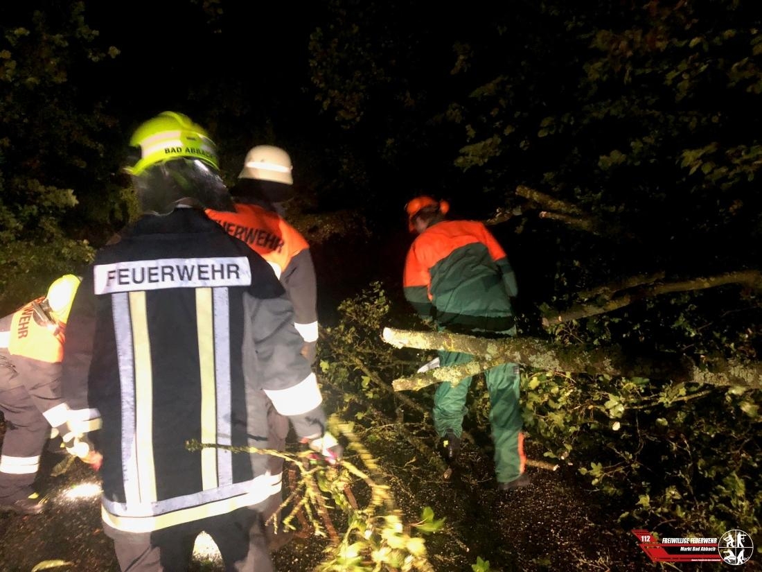 Es stellte sich heraus, dass mehrere Bäume in einer Waldstrasse umgekippt sind und eine Freileitung eines Energieversorgers komplett abgerissen haben. Der Versorger wurde an die Einsatzstelle beordert um weitere Details zu besprechen. Es folgte eine weitere Meldung dass im Bad Abbacher Ortsteil ein Komplettstromausfall vorliegt, welcher auf die abgerissene Versorgungsleitung zurückzuführen war.