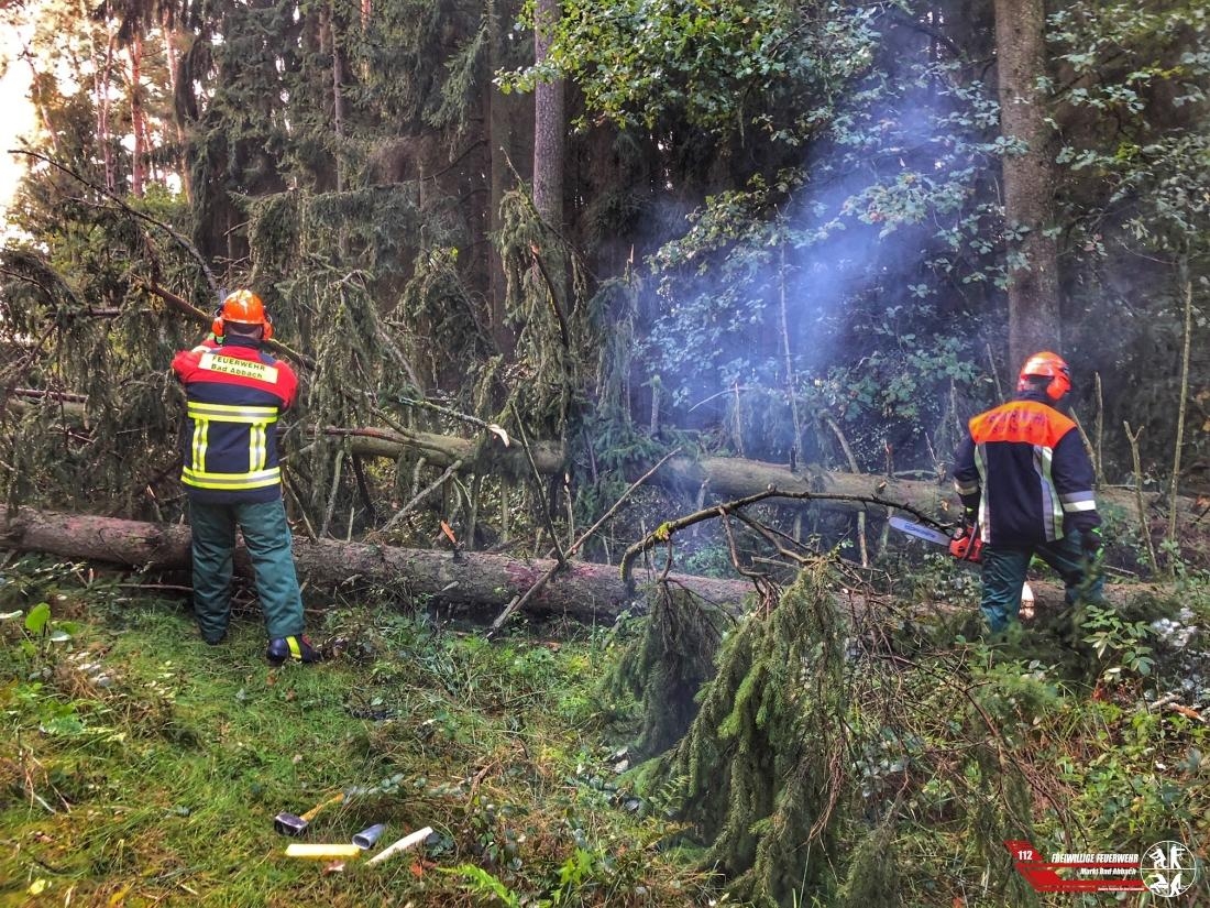 Nachdem das Sturmtief "Fabienne" über Bad Abbach hinwegezogen war, konnten wir das Waldstück bei der Schleuse Bad Abbach sicher anfahren und dort die Stromtrasse für die Bayernwerk AG von umgestürzten Bäumen befreien.
