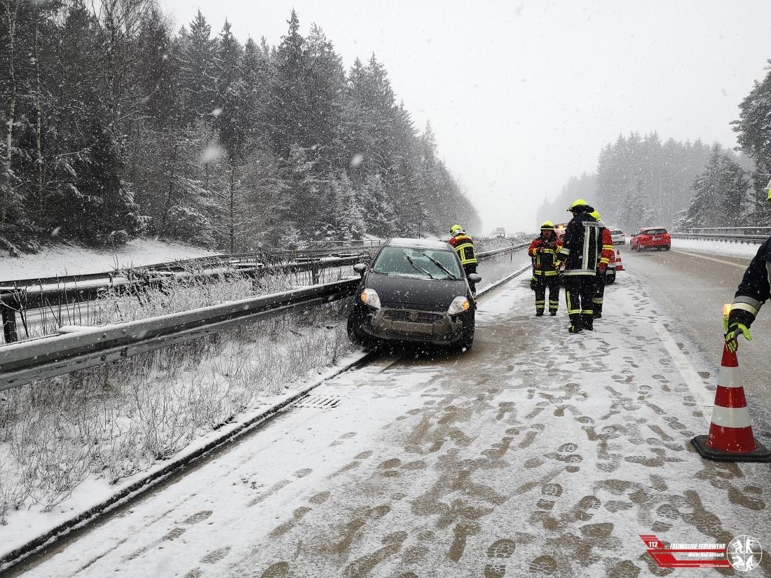Bei Schneefall wurden wir auf die Autobahn 93 zwischen dem Dreieck Saalhaupt und der Anschlussstelle Hausen alarmiert. Es ist ein Pkw der Marke Fiat alleinbeteleigt ins schleudern gekommen. Durch Rettungsdienstkräfte aus München die zufällig zur Unfallstelle hinzugekommen sind, wurde die verletzte Person erstversorgt und mit einem Rettungswagen aus dem Bereich Regensburg in ein Krankenhaus verbracht. Während der Bergungsmaßnahmen musste die linke Fahrspur für den Verkehr gesperrt werden. Nachdem die Autobahnmeisterei die schneebedeckte Fahrbahn geräumt hat, konnte die Fahrspur wieder für den Verkehr freigegeben werden.