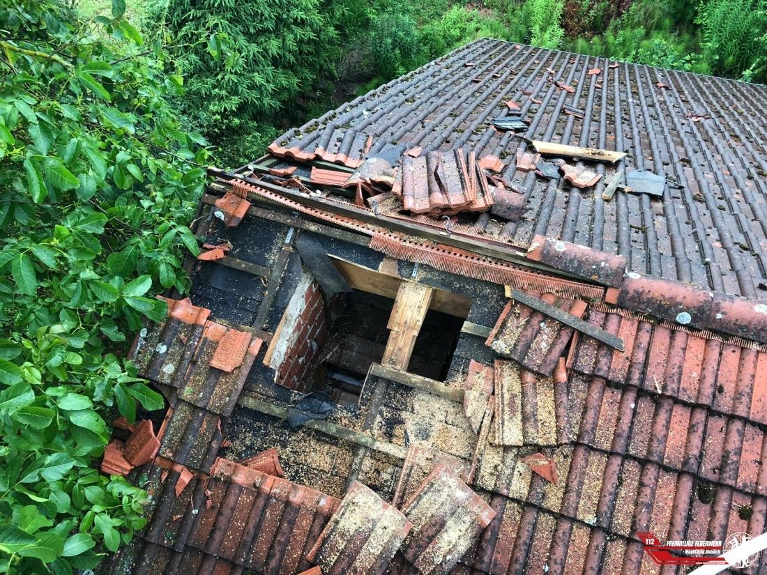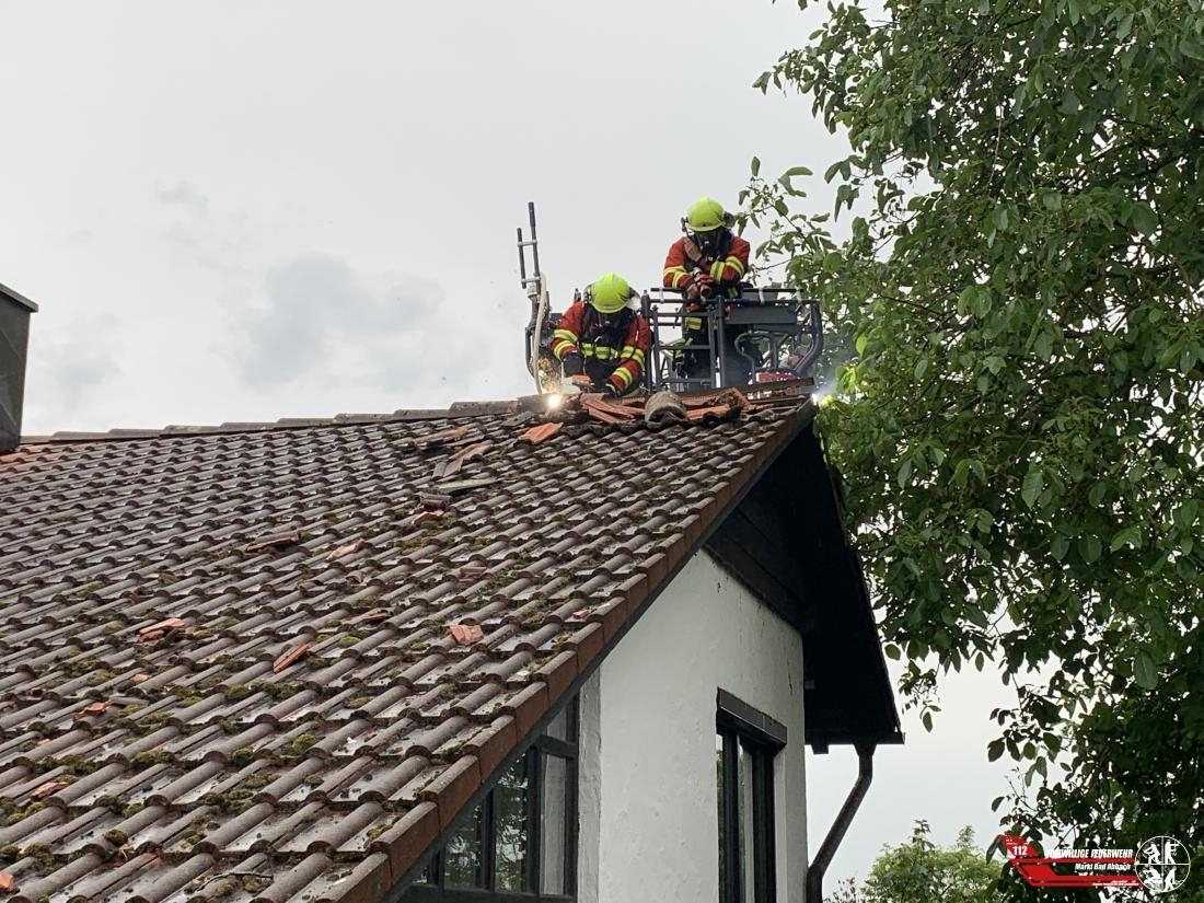 Zu einem Dachstuhlbrand wurden wir heute Abend um 18:26 Uhr in den Kalkofenring alarmiert. Nach einem kurzen, aber heftigen Unwetter mit mehreren Blitzeinschlägen hat es leider auch das Dach eines Wohnhauses erwischt. Mittels Drehleiter und Rettungssäge wurde die Dachhaut an der Einschlagstelle geöffnet und die Glutnester abgelöscht, sowie die verbrannte Dämmwolle ausgeräumt. Gleichzeitig befanden sich zwei Atemschutztrupps im Innenangriff. Ein Trupp war im Dachboden um die Brandbekämpfung von innen zu unterstützen, während der zweite Trupp das restliche Gebäude, sowie die Elektroverteilung kontrollierte. Die Feuerwehr Lengfeld wurde durch den Einsatzleiter mit weiteren Atemschutzträgern nachalarmiert. Der Energieversorger wurde ebenfalls verständigt um das Haus von der Elektroversorgung zu nehmen. Der örtliche Bauhof unterstütze uns bei den Arbeiten, um die geöffnete Stelle im Dach mittels einer Plane vor weiterem Regen bis zur Reparatur zu schützen. Aufgrund des Blitzeinschlags kam es auch in umliegenden Wohnhäusern zu elektronischen Schäden. Eine Person wurde dabei leicht verletzt und von den Kräften des Rettungsdienstes versorgt.