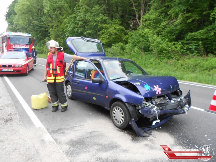 Um 18:37 Uhr wurde die Hochwasser-Wachbesetzung zu einem Verkehrsunfall auf die Bundesstraße 16, höhe des Löwendenkmals gerufen. Zusätzlich wurde Kleinalarm für den Rest der Einsatzmannschaft ausgelöst. Ein Aufahrunfall zwischen zwei Pkw forderte eine verletzte Person. Die Bundesstraße 16 wurde halbseitig gesperrt und die Fahrbahn gereinigt.