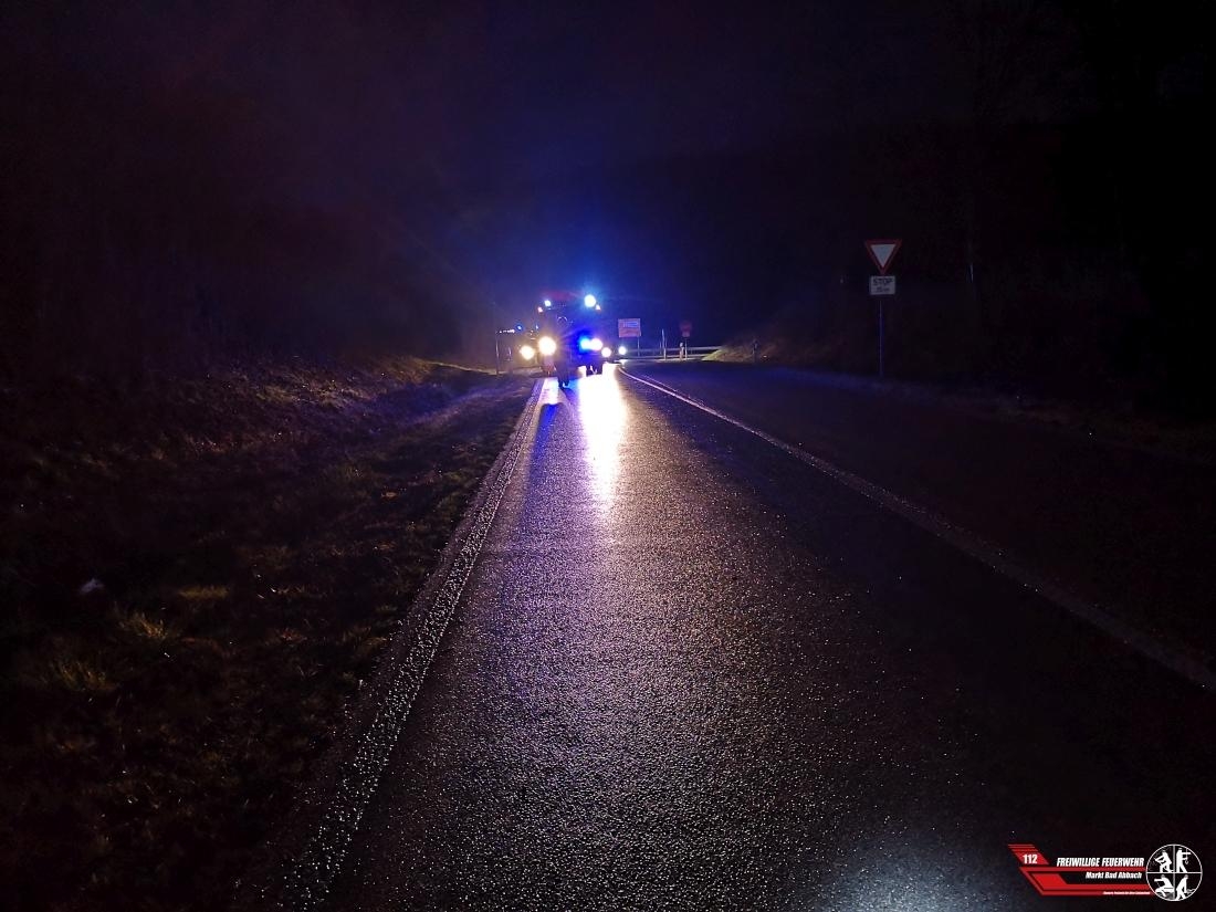 Zur Unterstützung der Kameraden der Feuerwehr Lengfeld wurden wir am frühen Abend des 1. Weihnachtsfeiertages zur Beseitigung einer ausgedehnten Ölspur nachalarmiert. Wir übernahmen ein Teilstück bis zur Auffahrt auf die Bundesstraße 16 in Fahrtrichtung Regensburg. Die zuständigen Straßenbaulastträger stellten Ölspurwarnschilder auf.