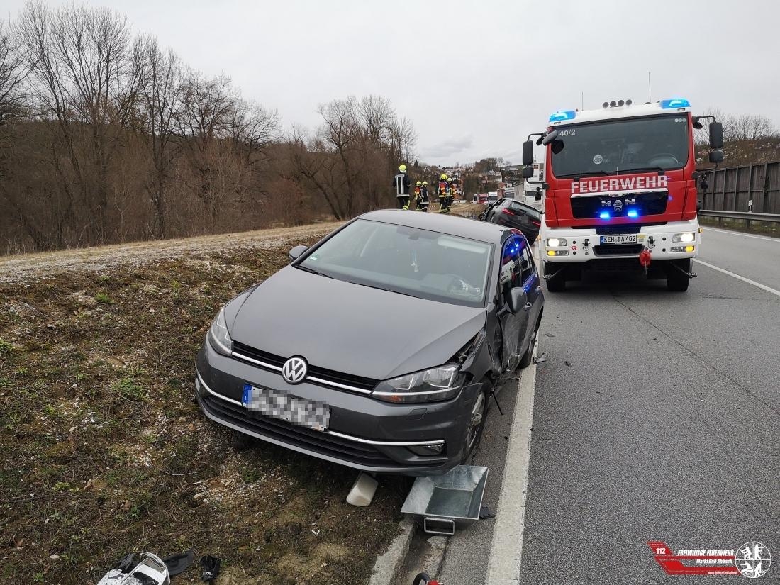 Zu einem Verkehrsunfall mit mehreren Pkw, sowie einem Lkw wurden wir heute Nachmittag auf die Bundesstraße 16 alarmiert. Da auch der ITH Christoph Regensburg auf Anflug war, wurde die Straße komplett gesperrt. Glücklicherweise wurde bei dem Unfall zwischen zwei Pkw und dem Lkw nur eine Person leicht verletzt, diese wurde in ein nahegelegenes Krankenhaus transportiert. Nach der Unfallaufnahme durch die Polizei wurde der Verkehr wechselseitig an der Unfallstelle vorbei geleitet. Die nicht mehr fahrbereiten Fahrzeuge wurden durch Abschleppunternehmen abtransportiert, danach konnte die Fahrbahn wieder freigegeben werden.
