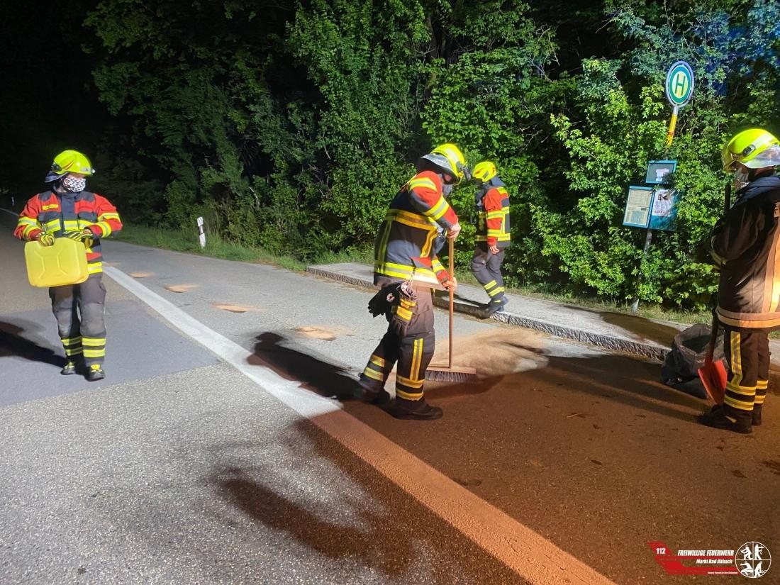 Zu einer Ölspur nach einem Verkehrsunfall wurden wir in die Finkenstraße alarmiert. Aus einem Fahrzeug lief nach einem Unfall das gesamte Öl des Fahrzeugs aus. Die Ölspur wurde abgebunden.