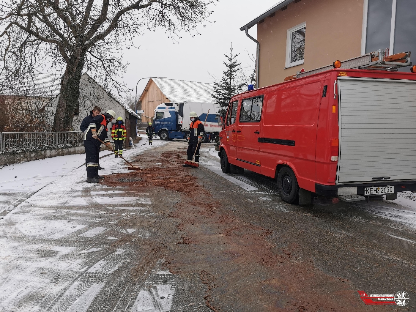 Um 08:30 Uhr wurden wir zusammen mit der Ortsteilfeuerwehr Peising zu einem "auslaufenden Kraftstoff aus Lkw" in die Keltenstraße alarmiert. Die massive Öl verunreinigung wurde von den Feuerwehren gebunden. Der örtliche Bauhof wurde ebenfalls mit einer Kehrmaschine zur Straßensäuberung hinzugezogen.