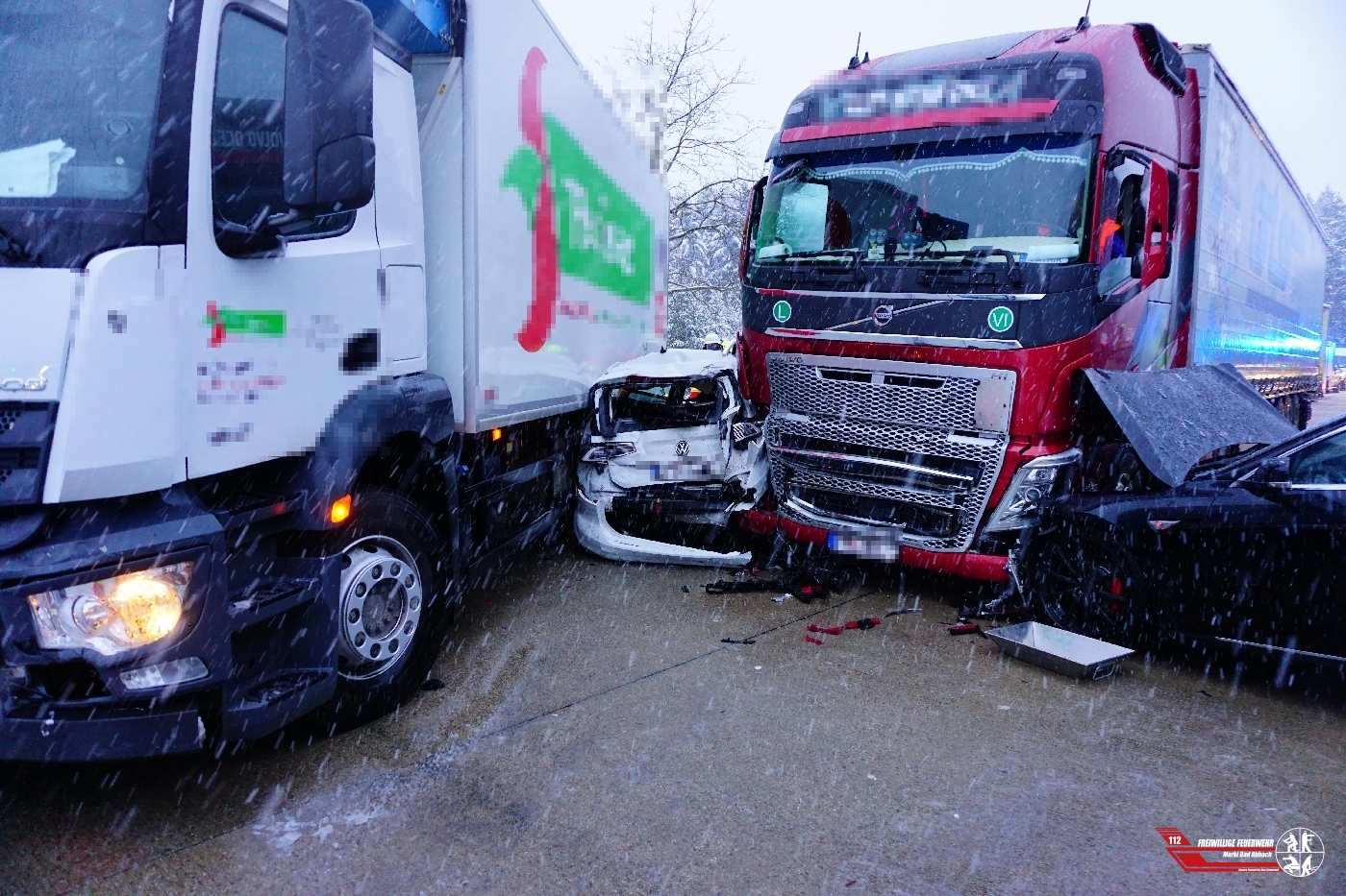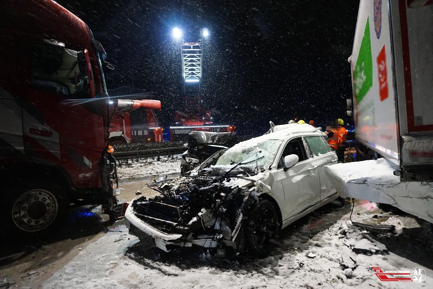Zur Unterstützung der Feuerwehren Langquaid, Hausen und Teugn wurden wir auf die Autobahn 93 alarmiert. Auf der Gegenfahrbahn zwischen Hausen und Saalhaupt in Fahrtrichtung Regensburg kam es im vorhinein zu einem Verkehrsunfall zwischen zwei Lkw und zwei Pkw. Wir wurden zur Sperrung des linken Fahrstreifens nachalarmiert. Außerdem forderte die Polizei im weiteren Einsatzverlauf unsere Drehleiter zur Unfallaufnahme an, desweiteren wurde die Drehleiter zur Ausleuchtung der Einsatzstelle eingesetzt.