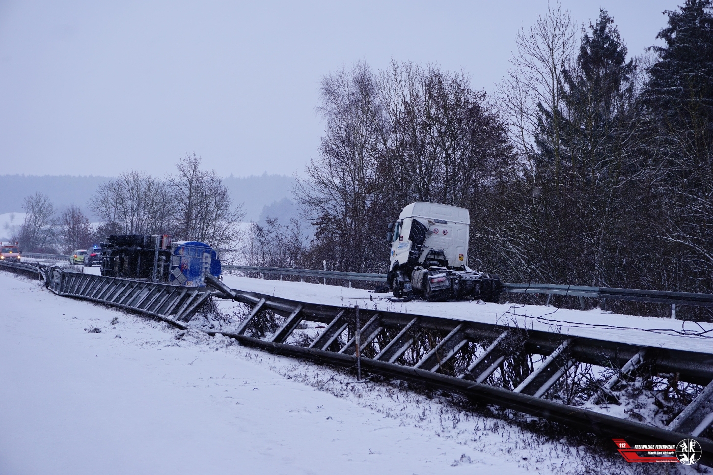 umgestürzter Gefahrgut-Lkw
