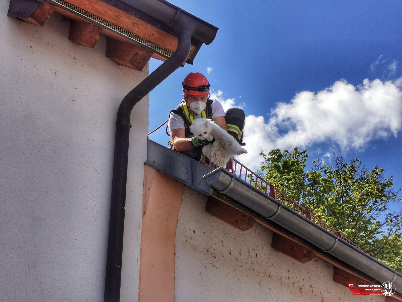 Heute wurden wir telefonisch zu einer Kleintierrettung in Bad Abbach in die Apothekergasse gerufen. Eine Katze saß schon längere Zeit auf einem Hausdach und konnte durch die Besitzer nicht selbstständig gerettet werden. Die Katze wurde durch einen Kameraden der Absturzsicherungsgruppe von ihrer misslichen Lage befreit und den Besitzern übergeben.