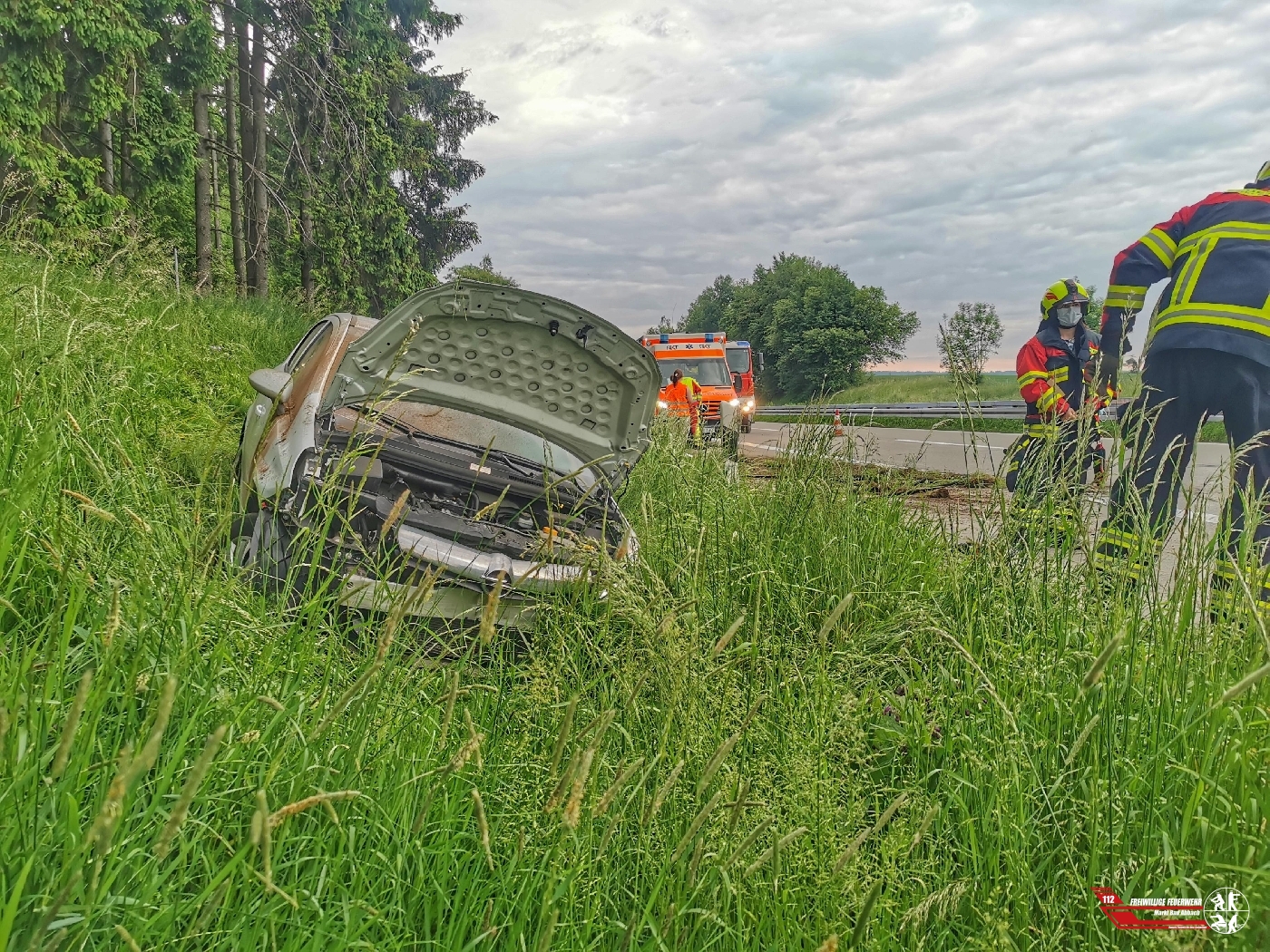 Nach Eintreffen der Einsatzleitung stellte sich lediglich ein alleinbeteiligter Pkw ohne zu rettende Person heraus.