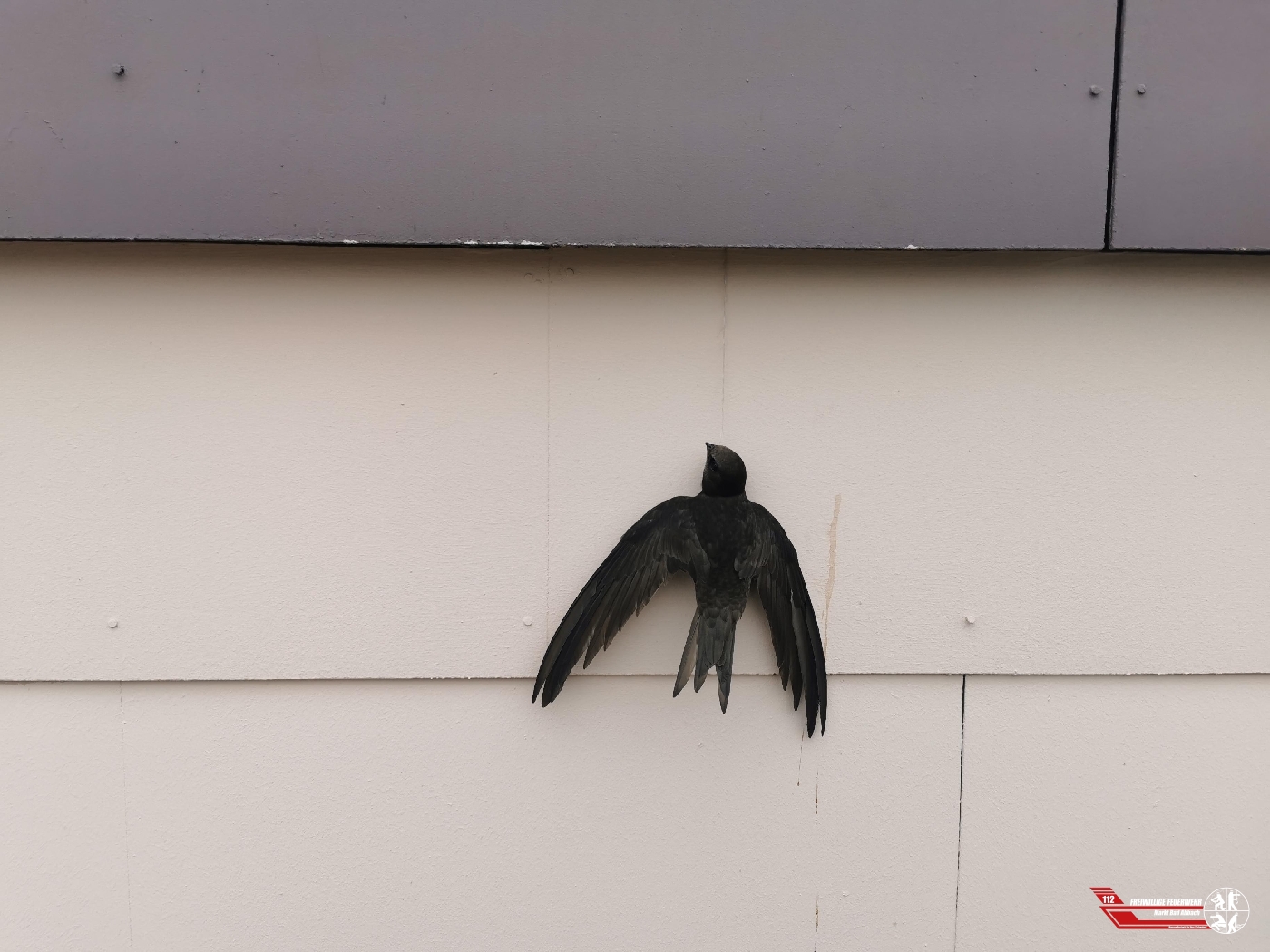 Gegen 12:10 Uhr machten uns Passanten über einen an der Hausfassade festhängenden Vogel in der Carl-Heindl-Straße aufmerksam. Die Drehleiter rückte aus und befreite die unverletzte Schwalbe.