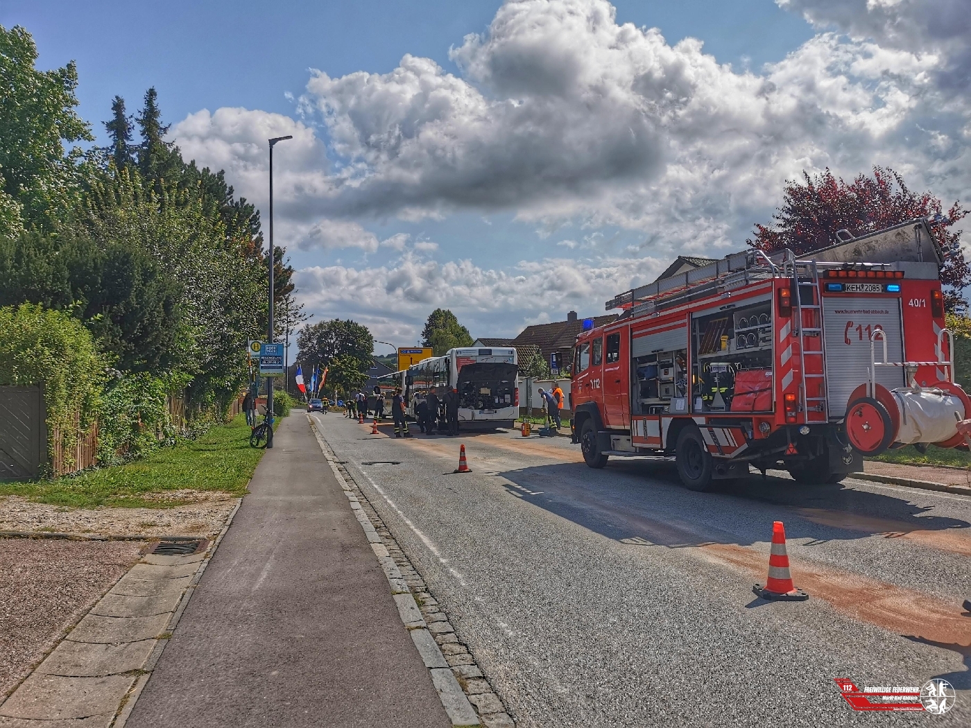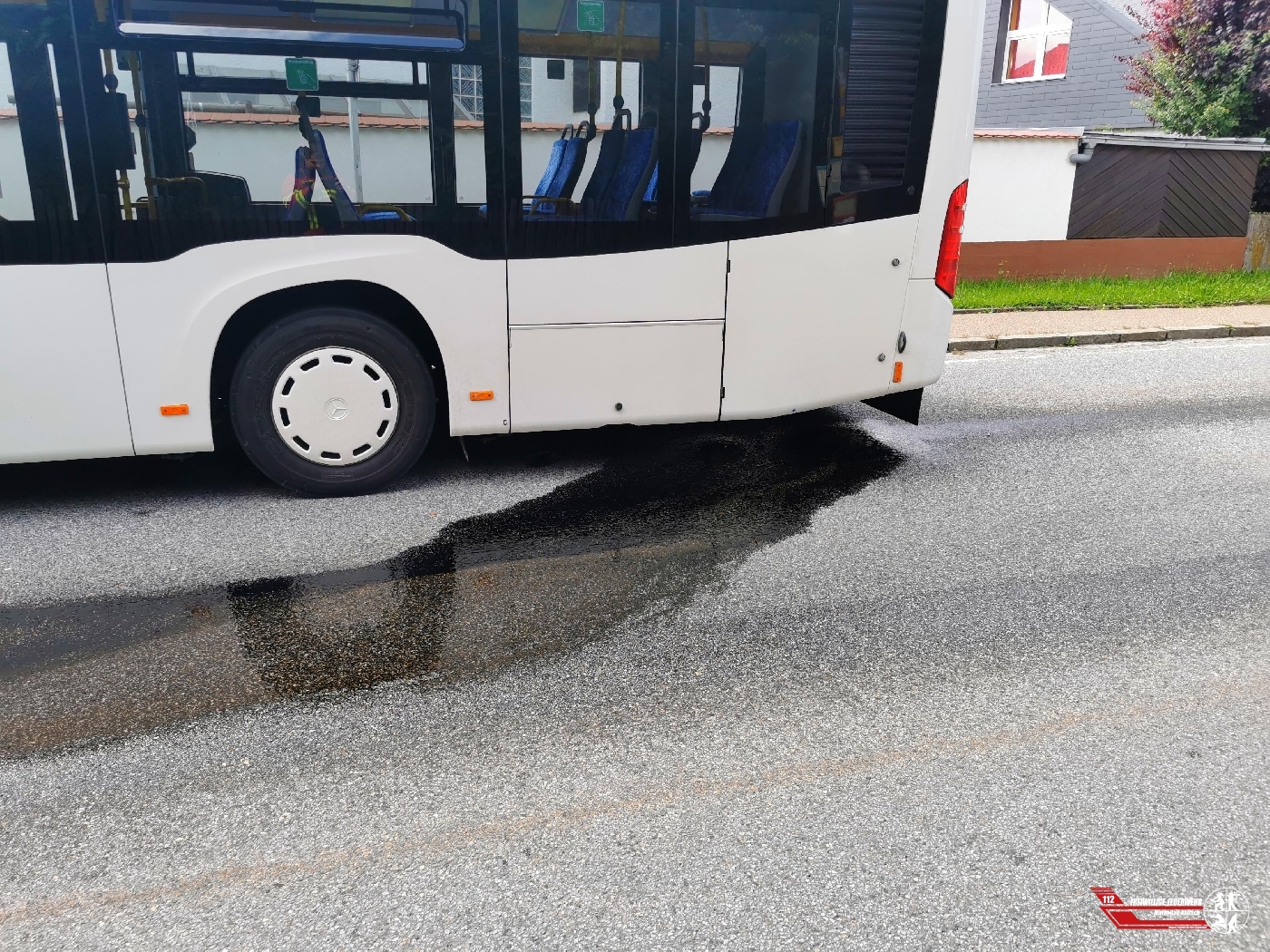 Gegen 13:55 Uhr wurden wir zu einer Ölspur in die Regensburger Straße alarmiert. An der Einsatzstelle stellte sich heraus, das ein Bus große Mengen an Diesel verloren hat.