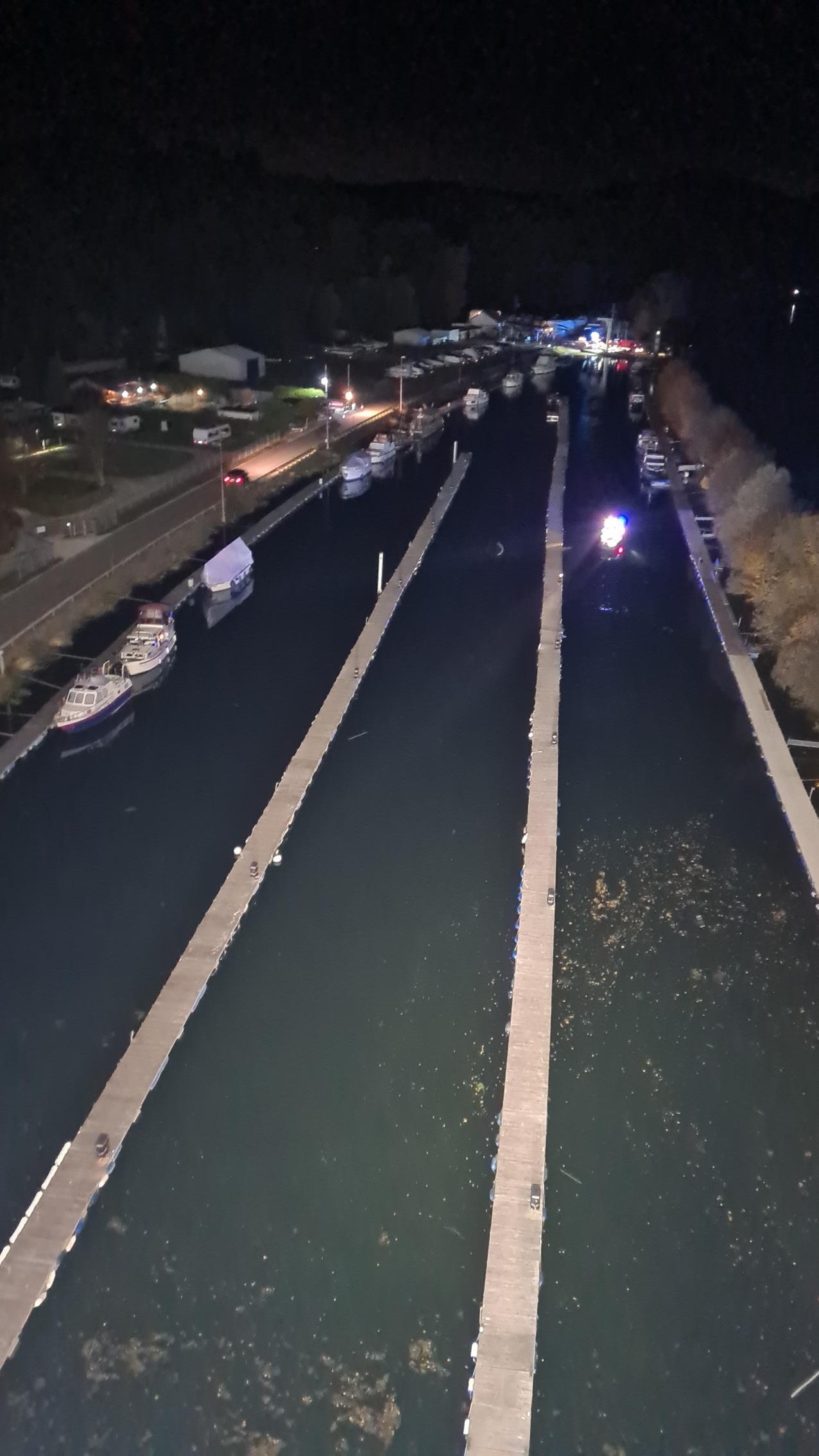 Um das Ausmaß der Verschmutzung besser erkennen zu können, leuchteten mehrere Einheiten sowie unsere Drehleiter die Wasseroberfläche aus.