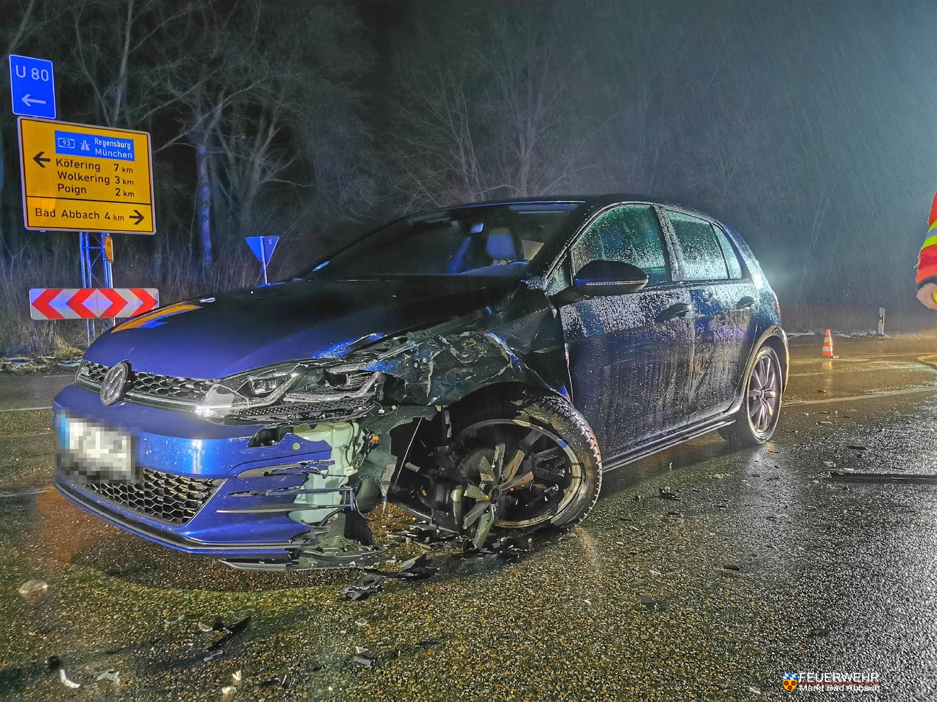Um 20:34 Uhr wurden wir wieder zu einem Verkehrsunfall mit PKW auf die Kreisstraße R4 alarmiert. Im Kreuzungsbereich Seedorf kam es aus bisher ungeklärter Ursache zu einem Verkehrsunfall mit zwei Kraftfahrzeugen. Zwei Personen wurden mittelschwer verletzt und durch den ebenfalls mitalarmierten Rettungsdienst in Kliniken transportiert. Zusammen mit der Feuerwehr Poign (Landkreis Regensburg) wurde die Einsatzstelle ausgeleuchtet, der Brandschutz sichergetsellt und Verkehrslenkungsmaßnahmen durchgeführt.