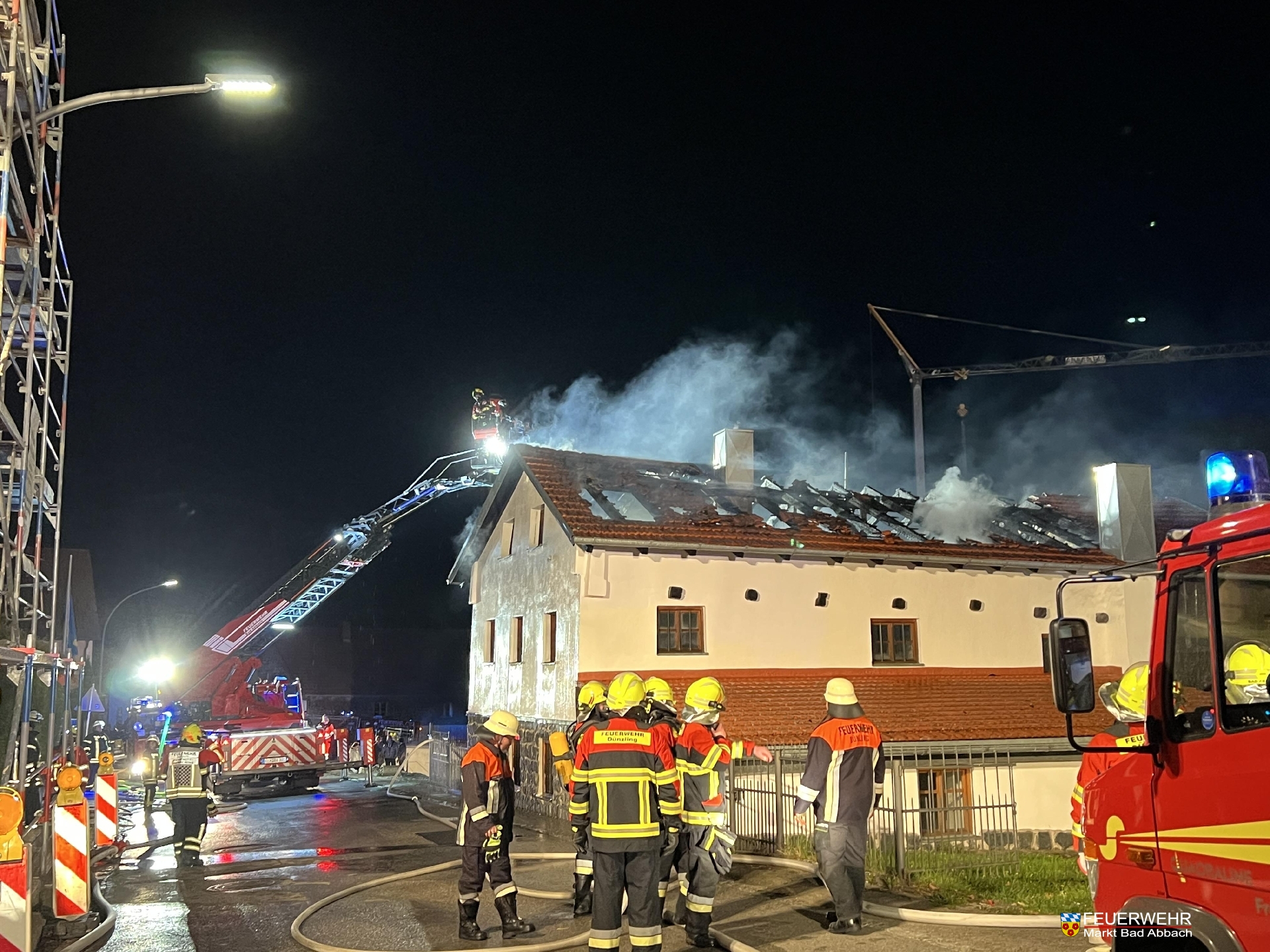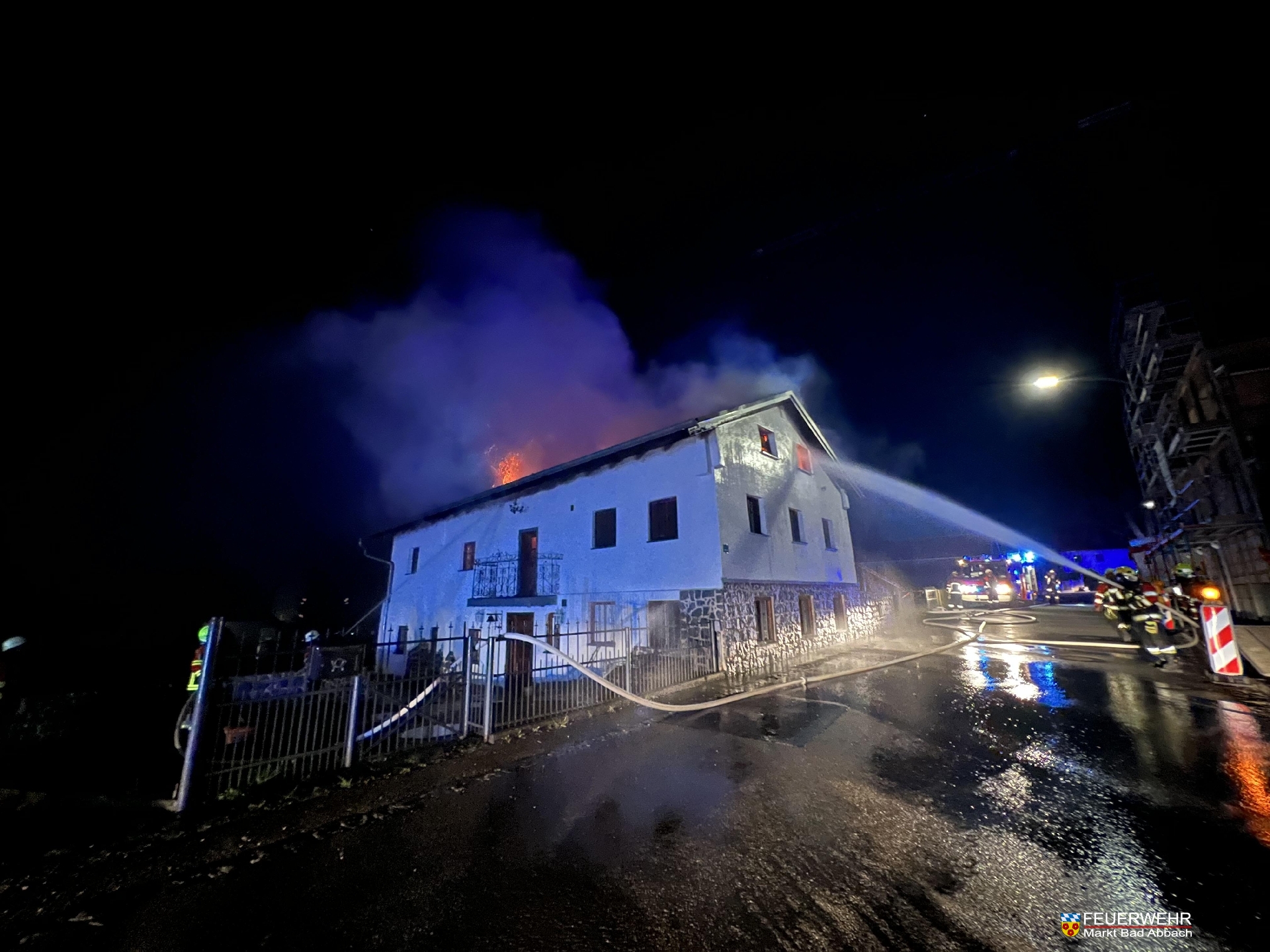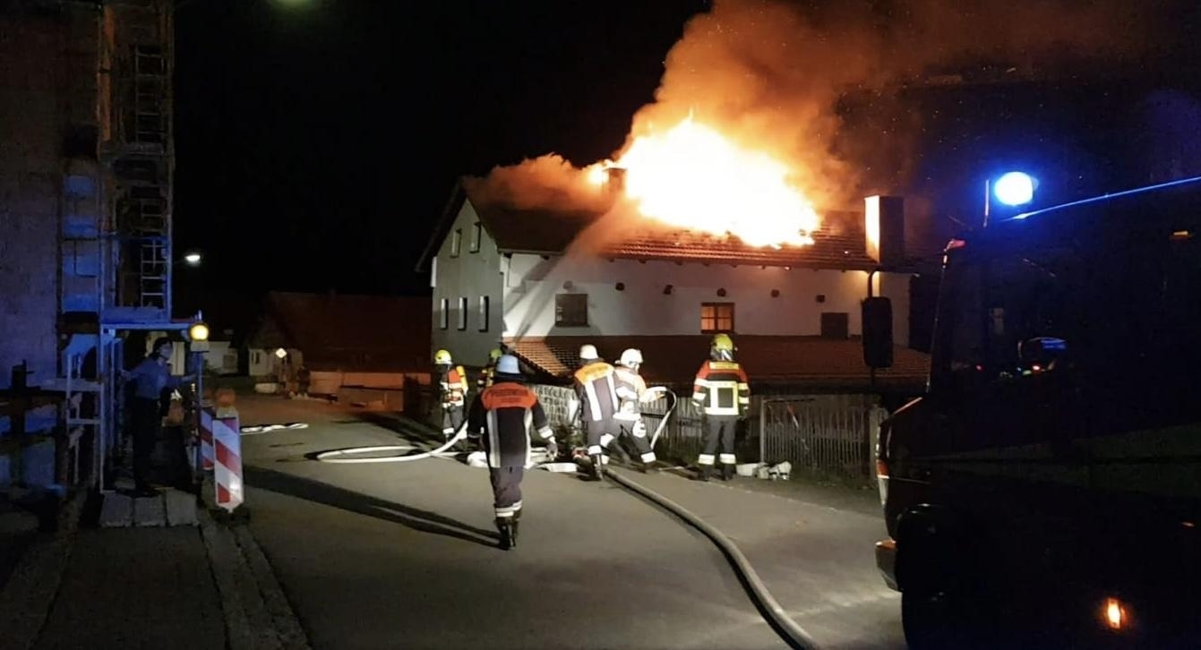 Um 21:07 Uhr wurden wir zusammen mit mehreren Feuerwehren in den Ortsteil Dünzling alarmiert. Bereits bei Eintreffen der ersten Kräfte stand der Dachstuhl eines leerstehenden Wohngebäudes in der Saalhaupterstraße bereits in Vollbrand.