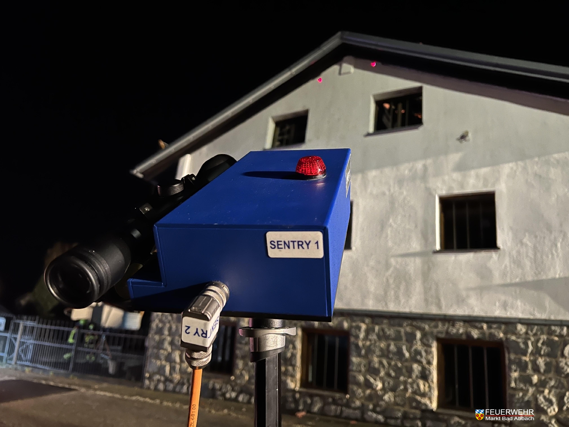 Aufgrund der unklaren Statik des im 18. Jahrhundert erbauten Hauses, wurde das Sentry System des THW Ortsverbandes Kelheim zur Überwachung nachalarmiert.