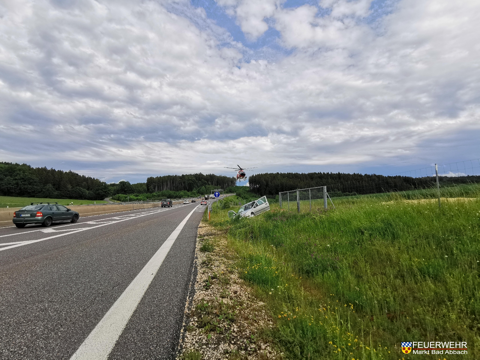 Um 16:10 Uhr wurden wir zu einem Verkehrsunfall auf die Autobahn A93 alarmiert. Nach großräumiger Erkundung stellte sich die Einsatzstelle auf der Bundesstraße 15 Neu heraus. Ein Kleinwagen kam alleinbeteiligt von der Fahrbahn ab und blieb im Straßengraben liegen. Die Kräfte des Rettungsdienstes und die Besatzung des Hubschraubers "Christoph Regensburg" versorgten die verletzte Person. Wir sperrten die Bundesstraße in Fahrtrichtung Essenbach, banden ausgelaufene Betriebsstoffe und stellten den Brandschutz sicher.