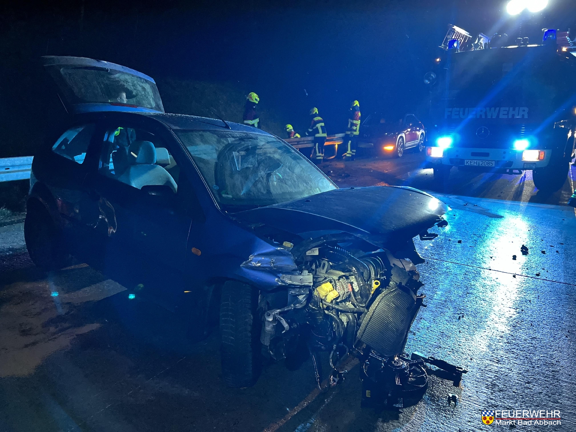 Zwei Pkw kollidierten miteinander, dabei kam ein Kleinwagen der Marke Ford ins Schleudern, touchierte im Frontbereich die Leitplanke und kam letztlich auf dem rechten Fahrstreifen zum Stehen.