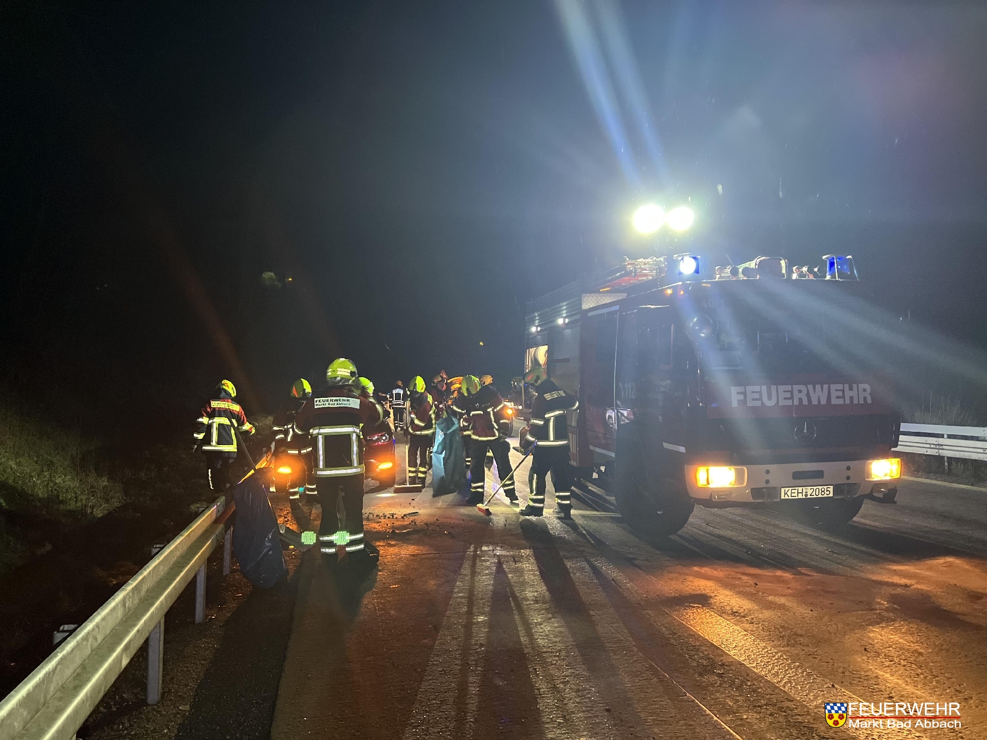 Die Verkehrspolizeiinspketion Regensburg hat den Unfall aufgenommen. Wir banden ausgelaufene Betriebsstoffe, stellten den Brandschutz sicher und regelten den Verkehr.