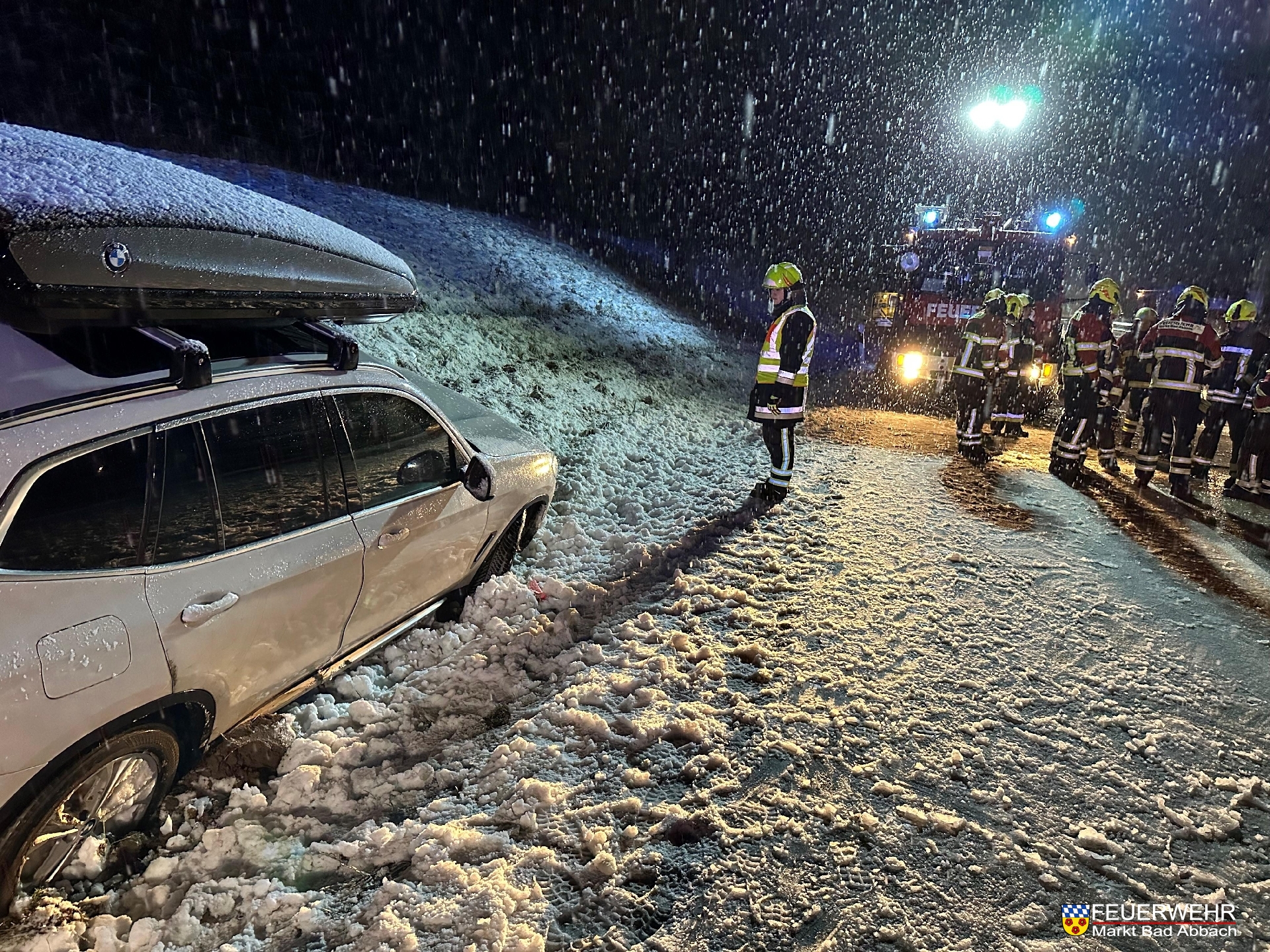 Ein Pkw kam aufgrund Schneeglätte ins Schleudern und rutschte in den Seitengraben. Die Unfallstelle wurde abgesichert und das Fahrzeug geborgen.