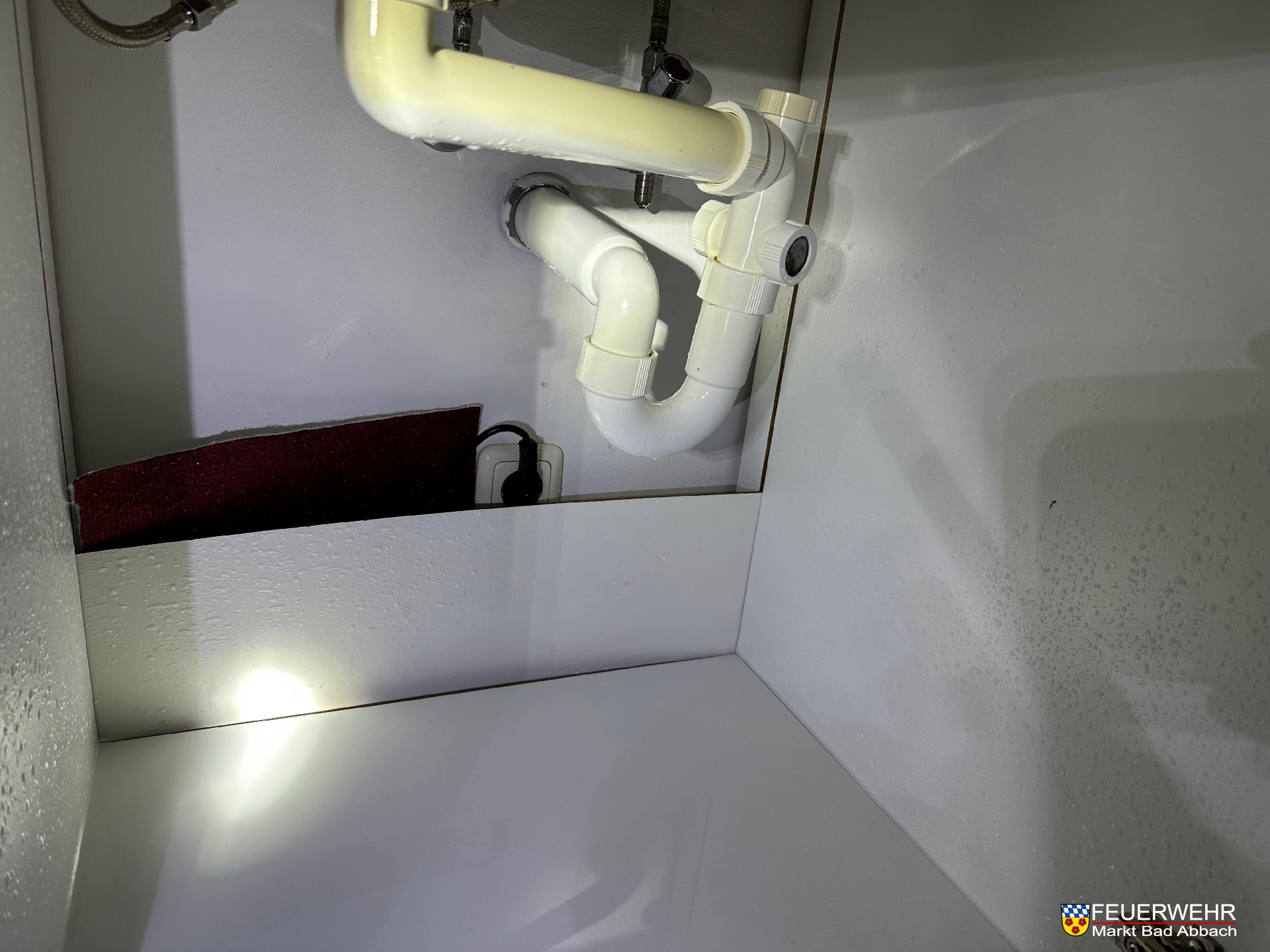 Aufgrund eines Defekts an einem Eckventil liefen mehrere Liter Wasser in einer Obergeschosswohnung eines Mehrfamilienhauses aus. Das Wasser verteilte sich auf die darunterliegenden Wohnungen und lief bis in die Tiefgarage des Gebäudes.
