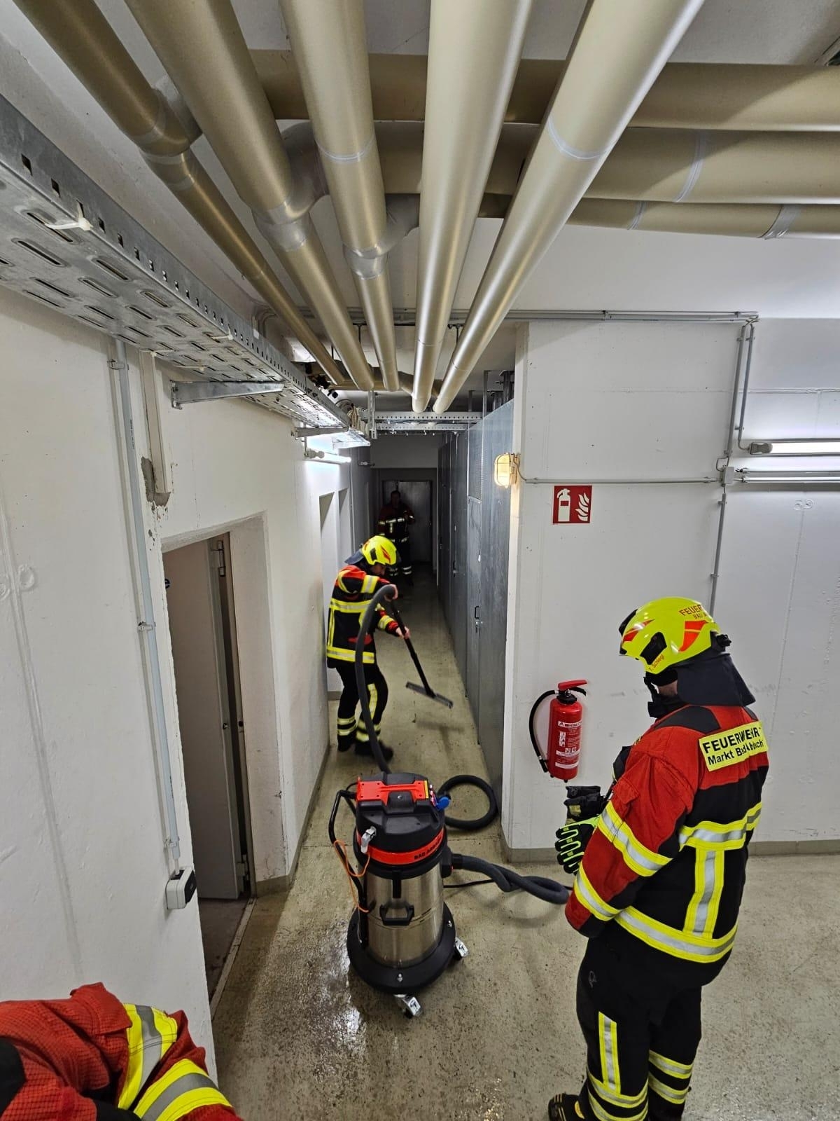 Wir öffneten mittels Sperrwerkzeug die Wohnungstüre der leerstehenden Wohnung und saugten mittels Wassersauger den entstandenen Wasserschaden in der Tiefgarage auf.