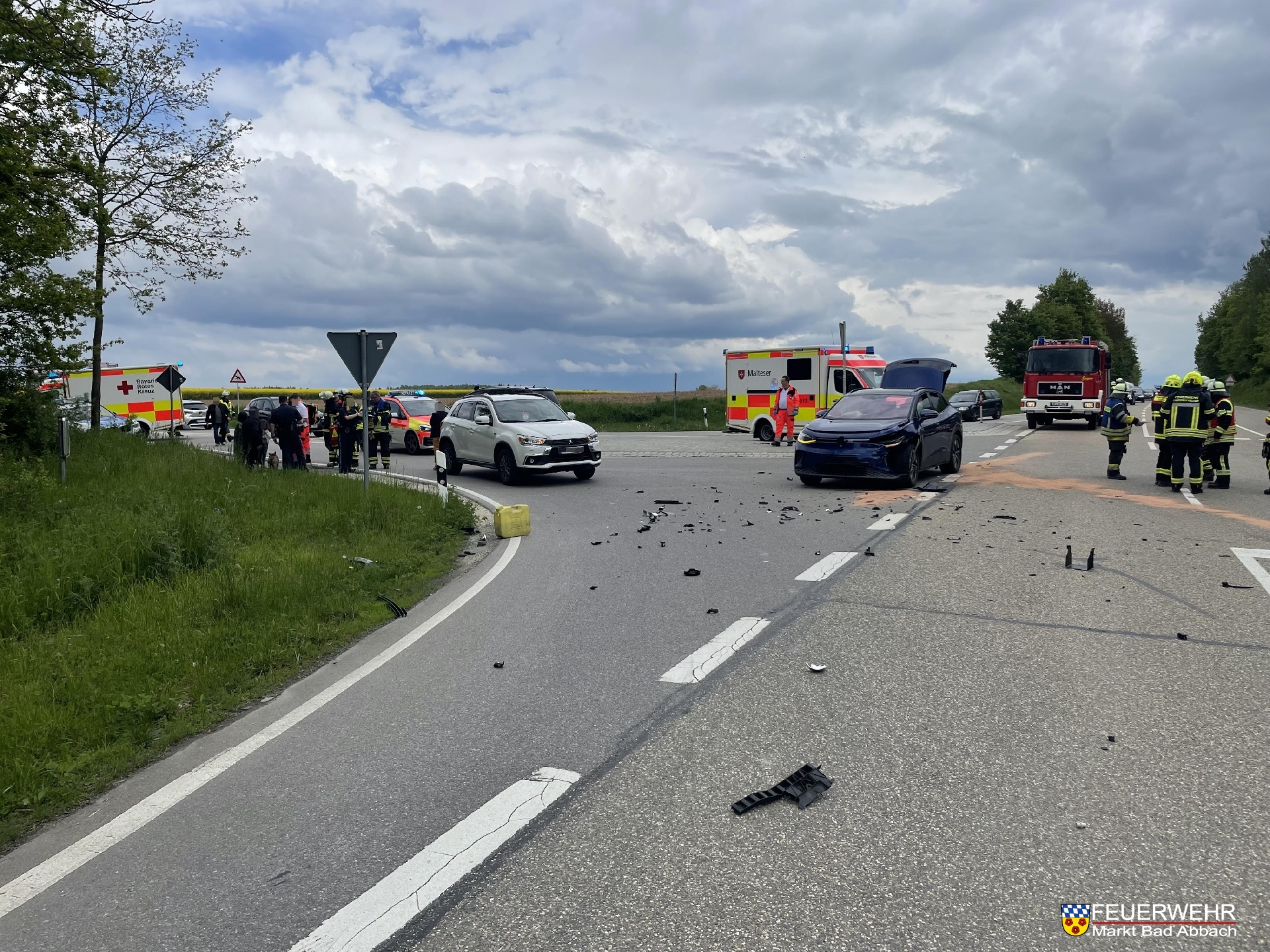 Gemeinsam mit den Kameraden mehrerer Feuerwehren wurden wir zu einem Verkehrsunfall auf die Staatsstraße 2143 höhe Seedorf alarmiert.