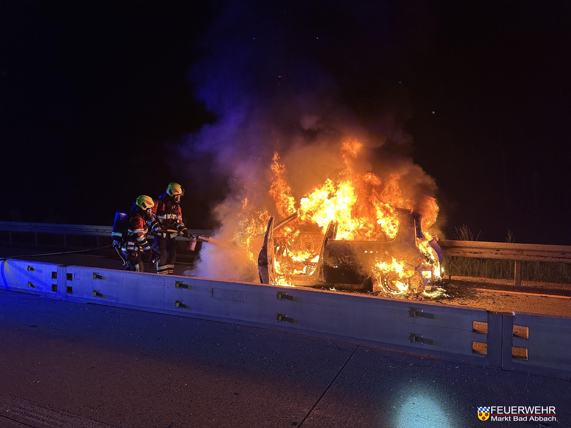Um 21:51 Uhr wurden wir zu einem brennenden Pkw in den Baustellenbereich der A93 zwischen dem Dreieck Saalhaupt und der Anschlussstelle Bad Abbach alarmiert.