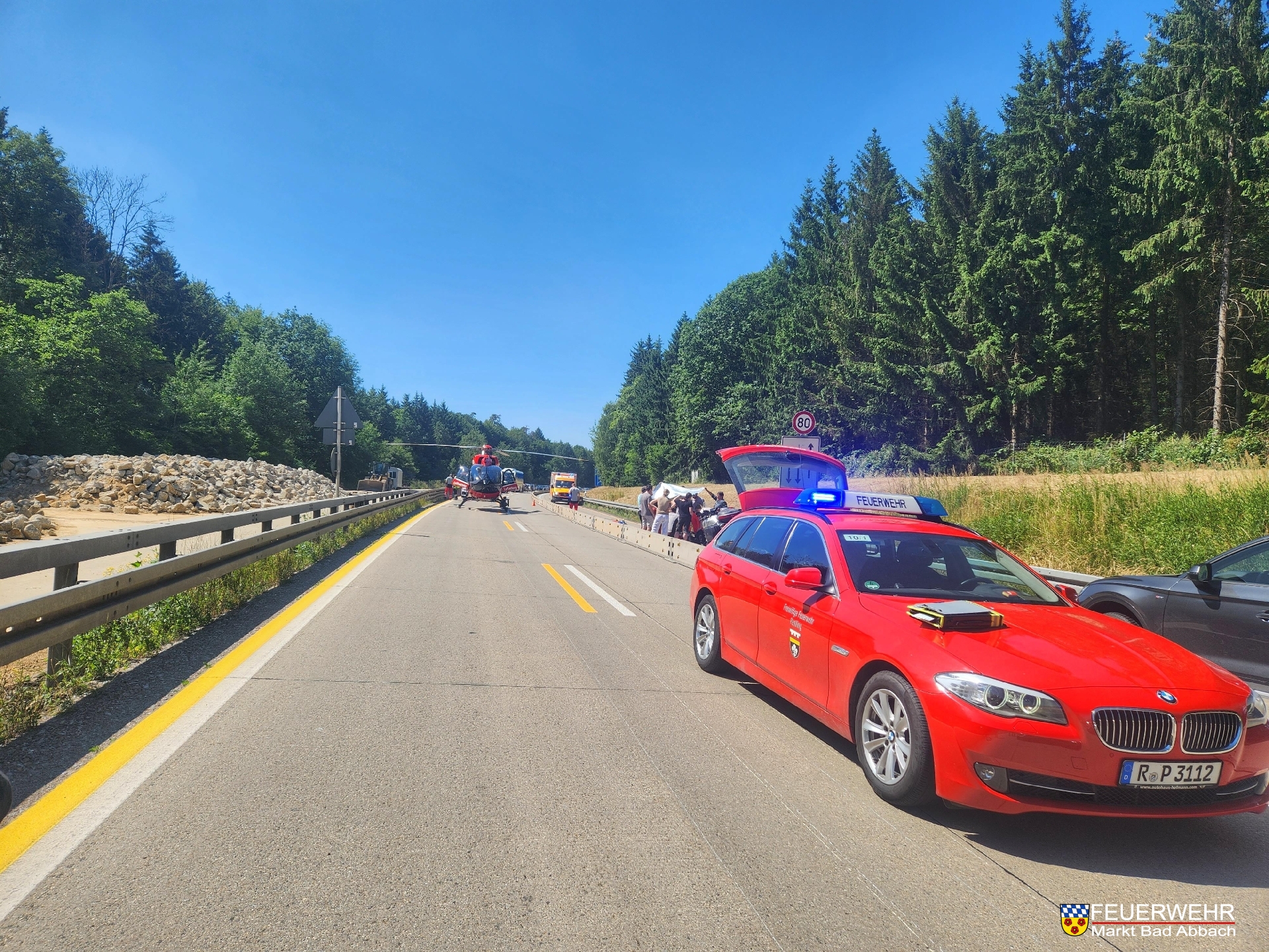 Am heutigen Sonntagnachmittag wurden wir zusammen mit der Feuerwehr Pentling auf die Autobahn 93 alarmiert. Ein Motorradfahrer kam im einspurigen Baustellenbereich aus unbekannter Ursacher zum Stürzen. Wir untersützen den Rettungsdienst bei den medzinischen Maßnahmen. In diesen Zeitraum war die Autobahn komplett gesperrt.