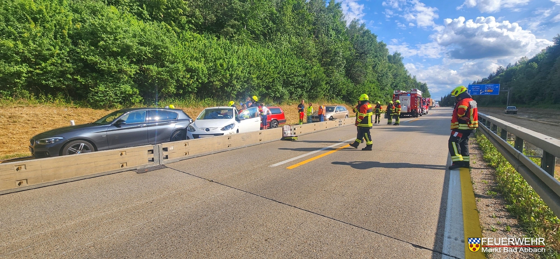 Um 17:13 Uhr wurden wir am heutigen Tag erneut auf die Autobahn 93 zu einem Verkehrsunfall zwischen mehreren Pkw zusammen mit der Feuerwehr Teugn alarmiert.