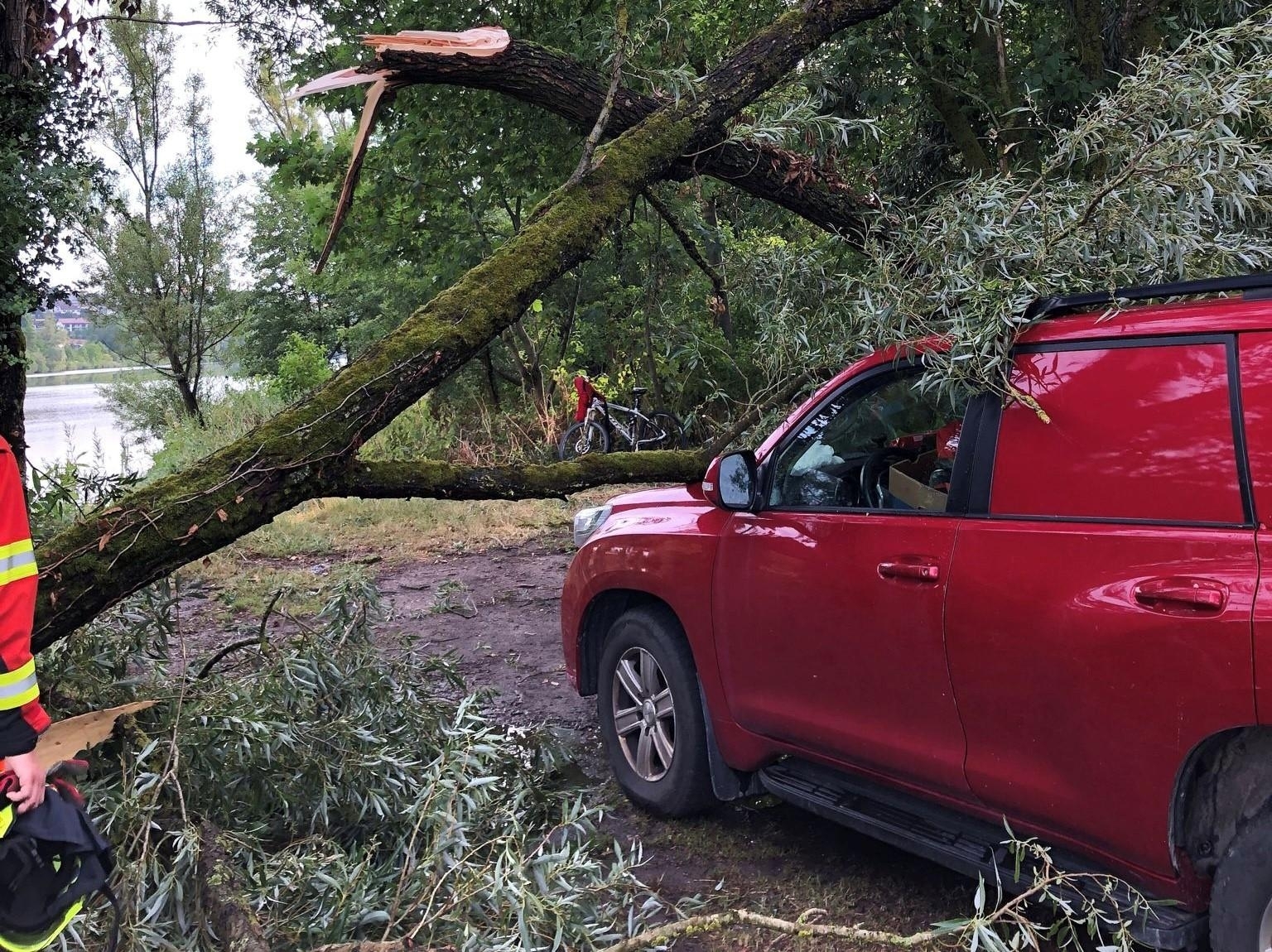 In Folge der Unwetternacht stürzte eine große Weide am Donauunfer auf einen Geländewagen. Verletzt wurde hierbei glücklichweise niemand.
