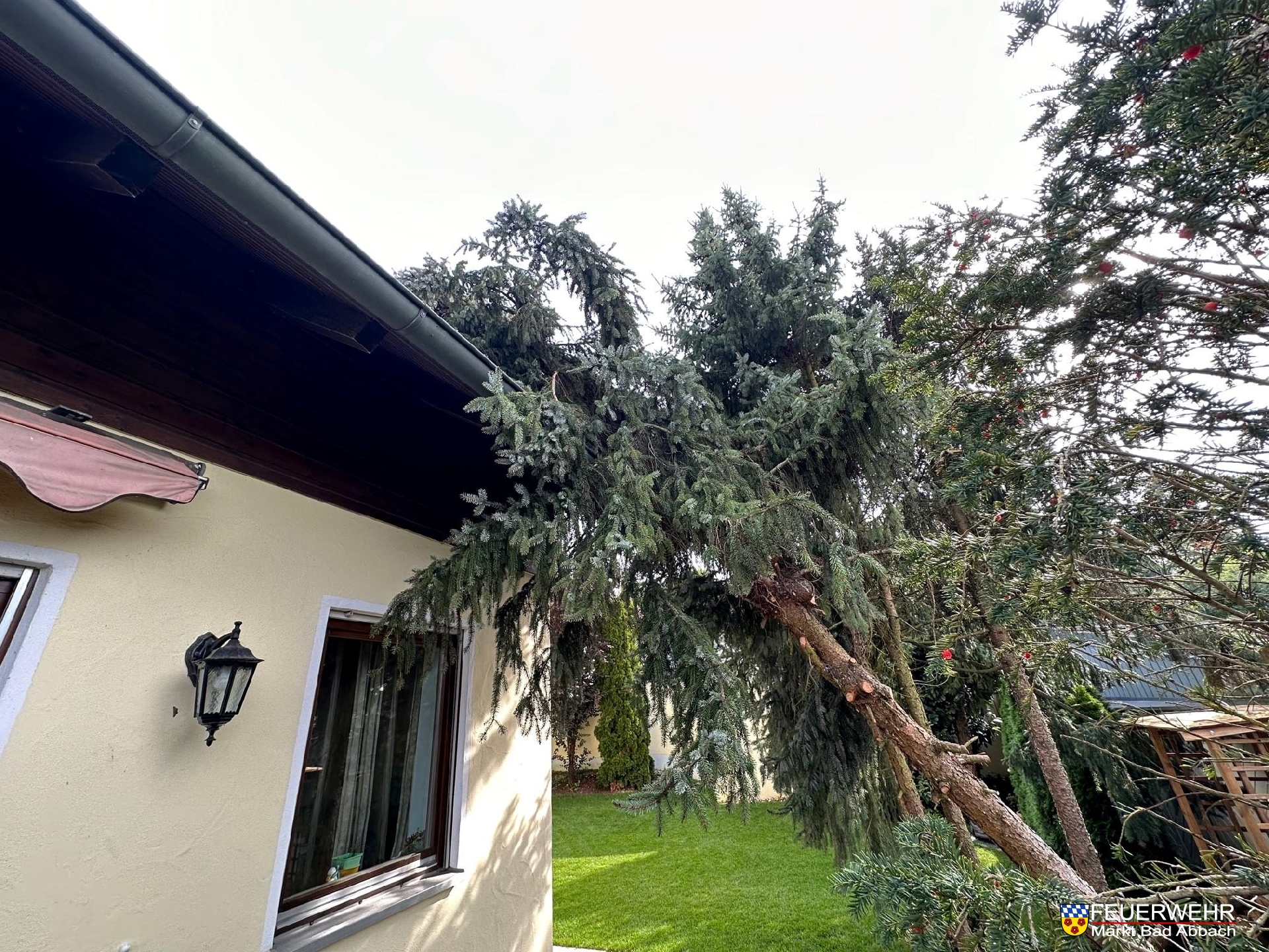 Gegen 9:30 Uhr wurden telefonisch durch die ILS Landshut über einen auf ein Hausdach gestürzten Baum am Kohlenschacht informiert.