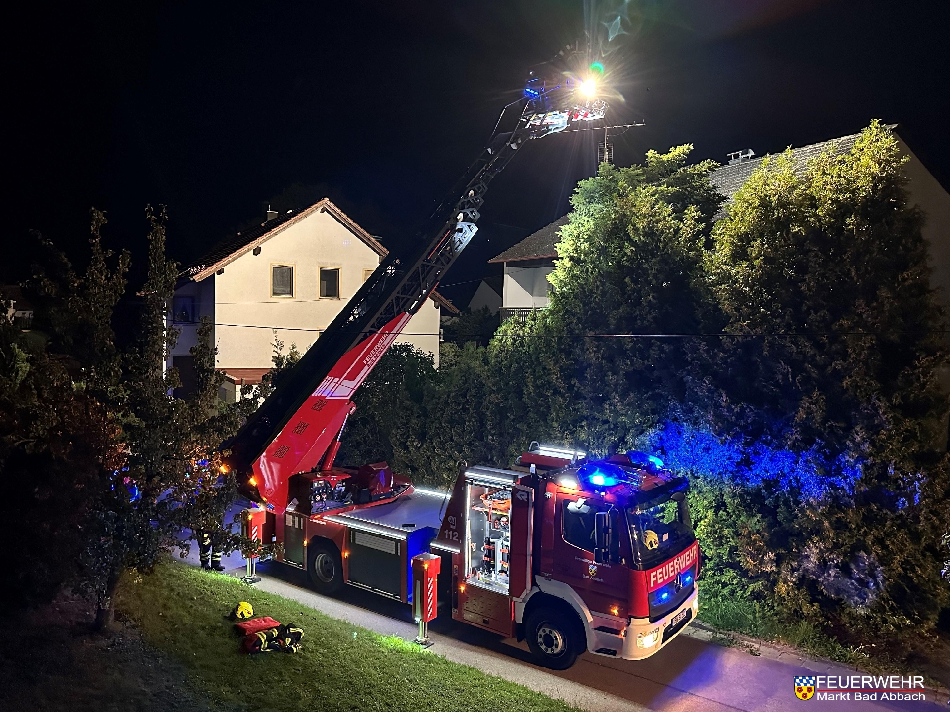 Aufgrund einer Nachforderung des dort im Einsatz befindlichen Rettungsdienstes, musste eine Person mit Hilfe der Drehleiter aus dem 1. Obergeschoss gerettet und zu Boden verbracht werden.